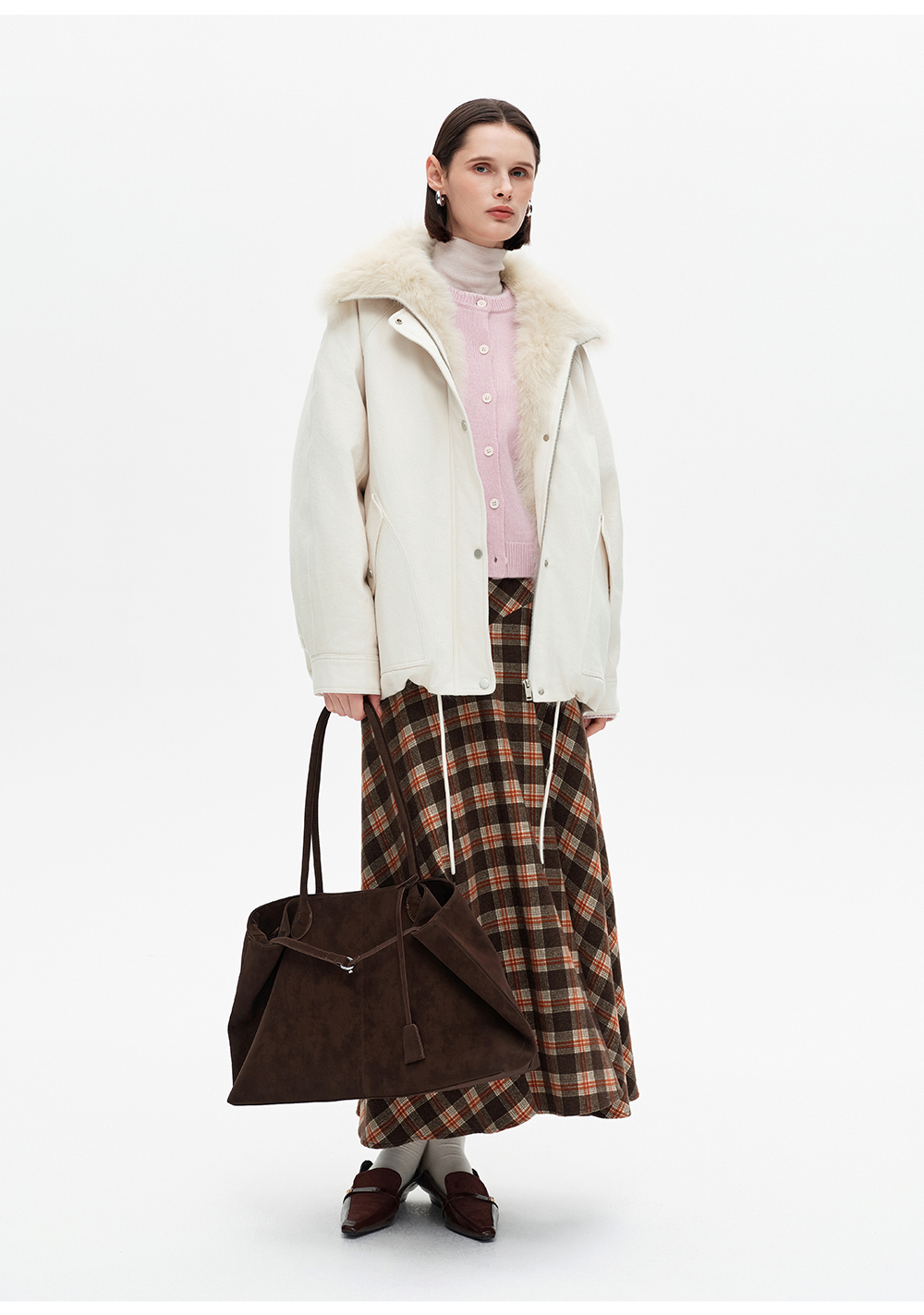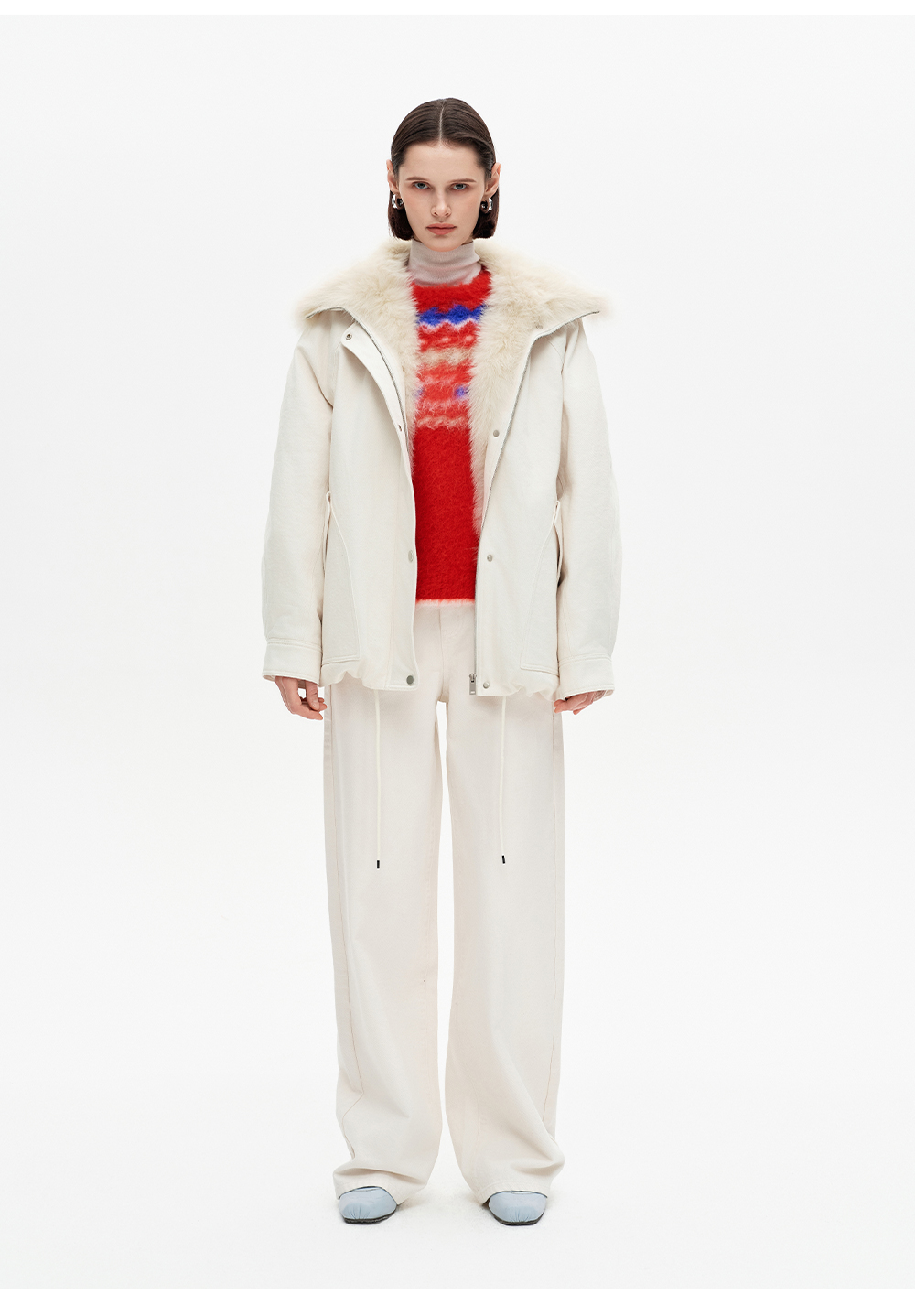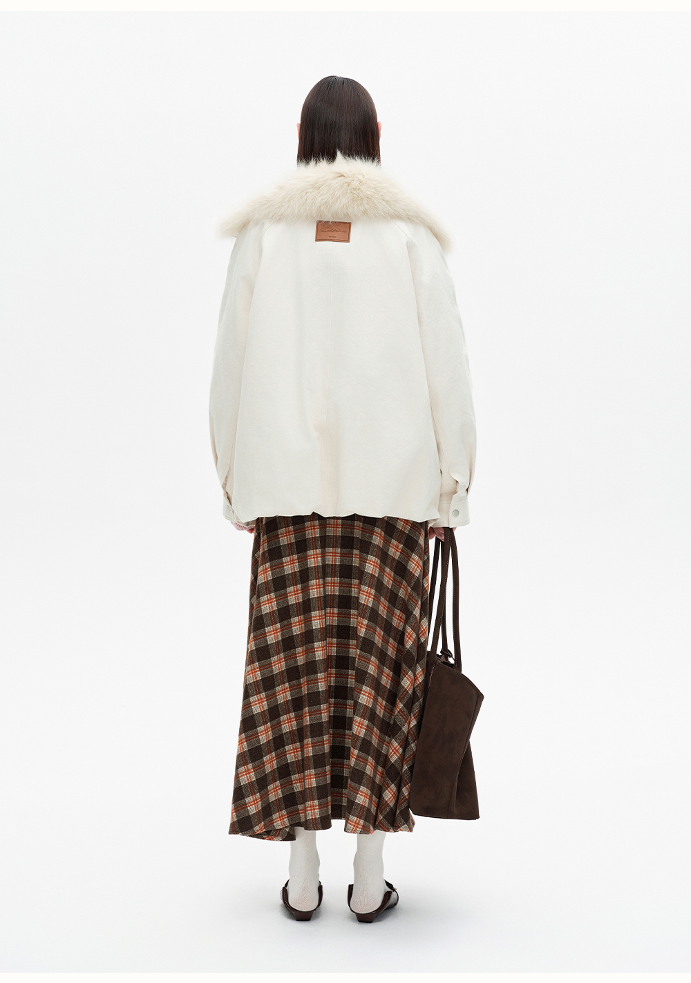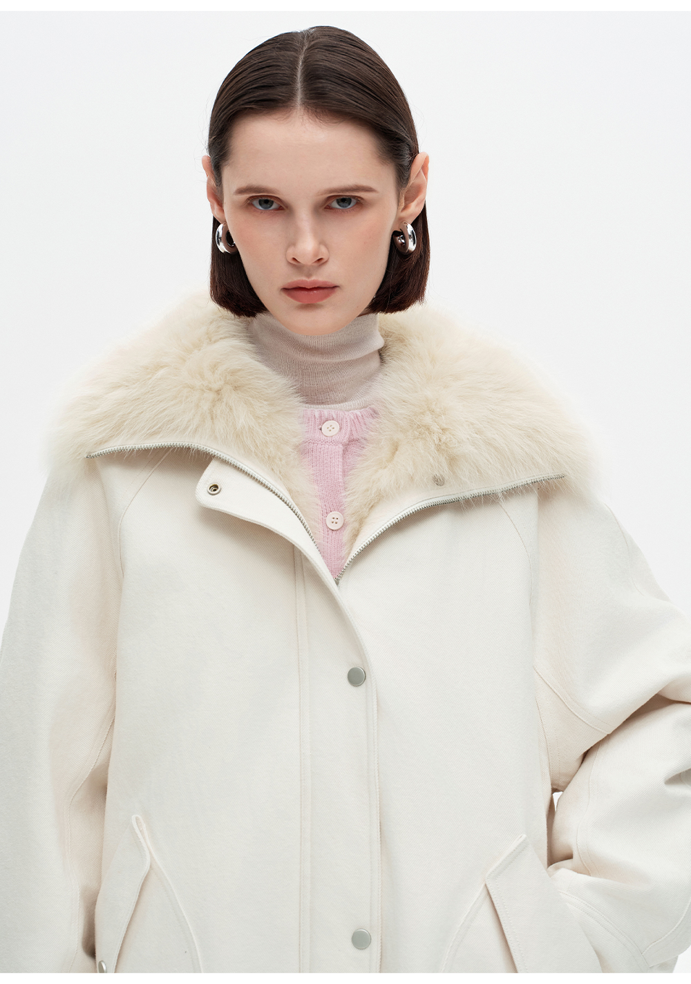 SELFWHO90白鸭绒狐狸毛翻领白色牛仔羽绒服女2025冬新款宽松外套