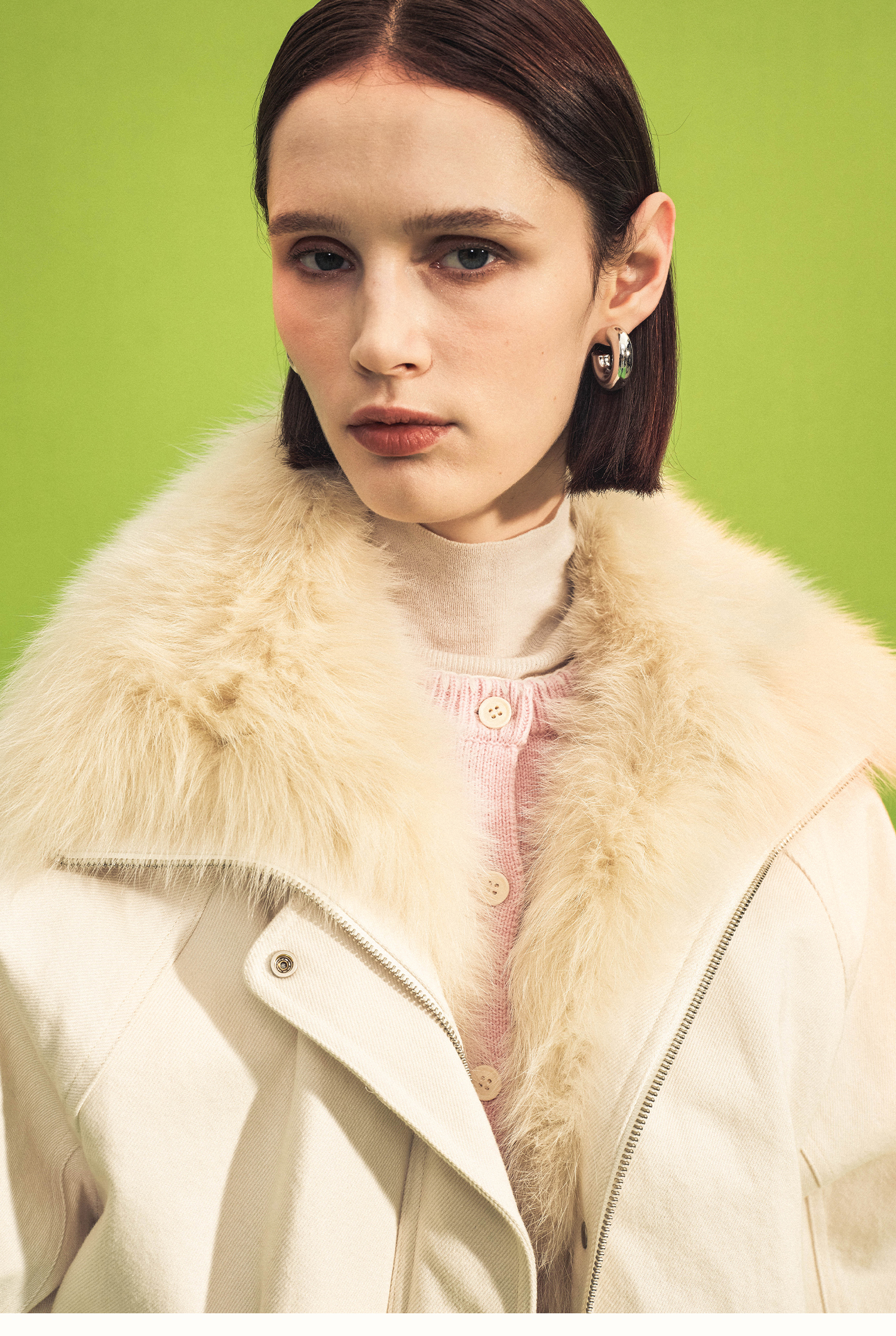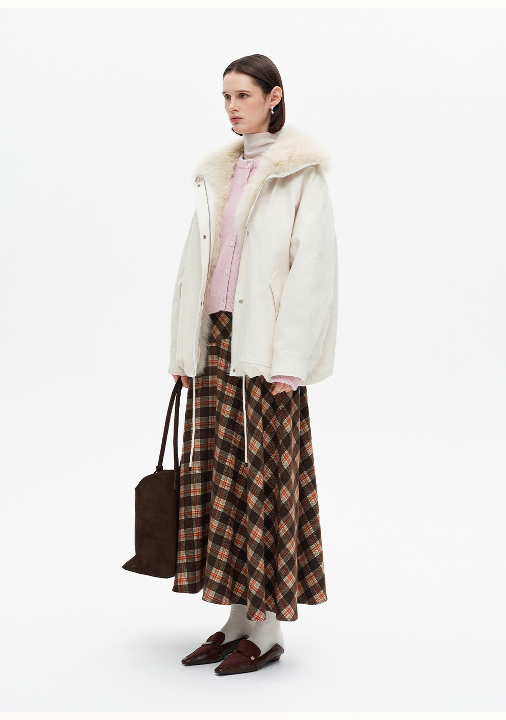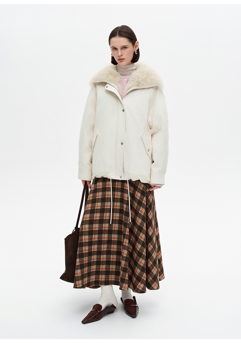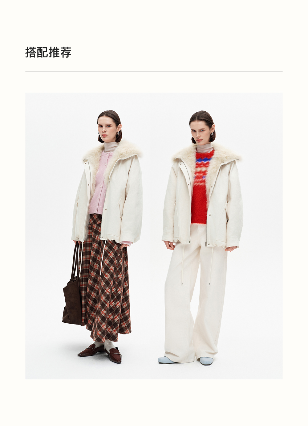SELFWHO90白鸭绒狐狸毛翻领白色牛仔羽绒服女2025冬新款宽松外套