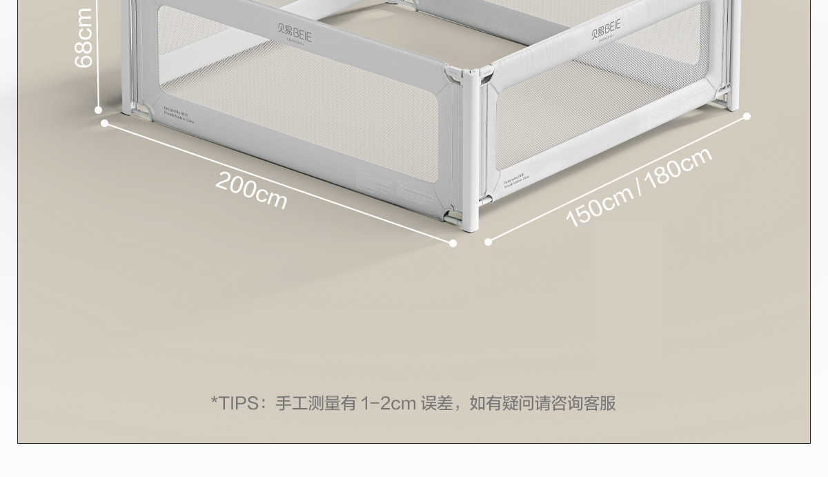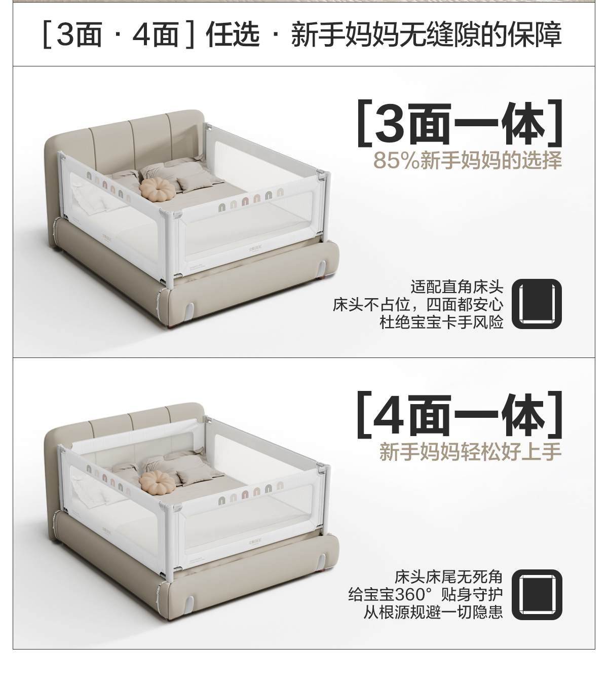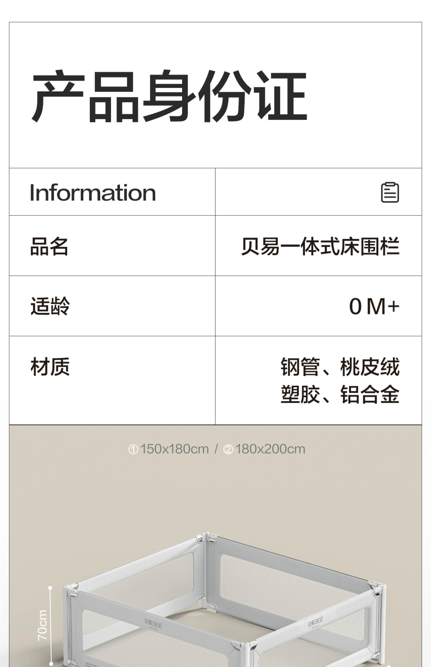 【限量秒杀】贝易一体式床围栏婴儿免打孔床围栏宝宝防摔防护栏床边围栏床围防护栏【下单前,请确认下床垫尺寸厚度以及床头位置是否可以安装】使用过程中,禁止使劲按压上杆以防变形。