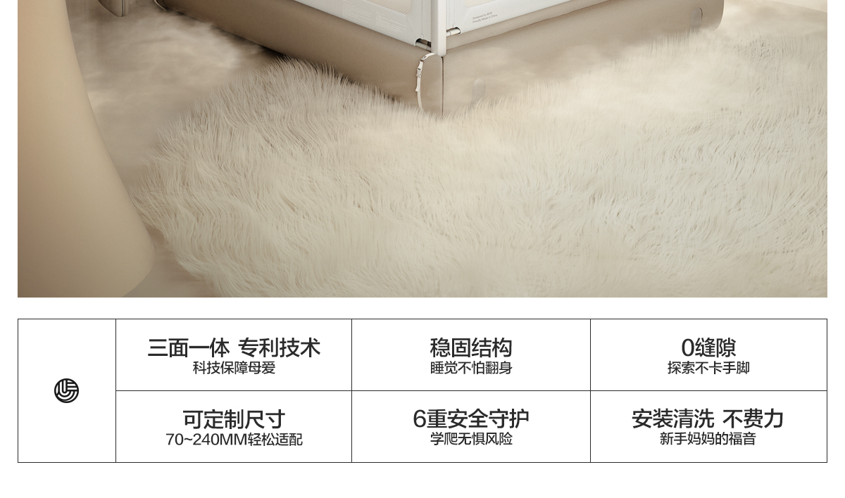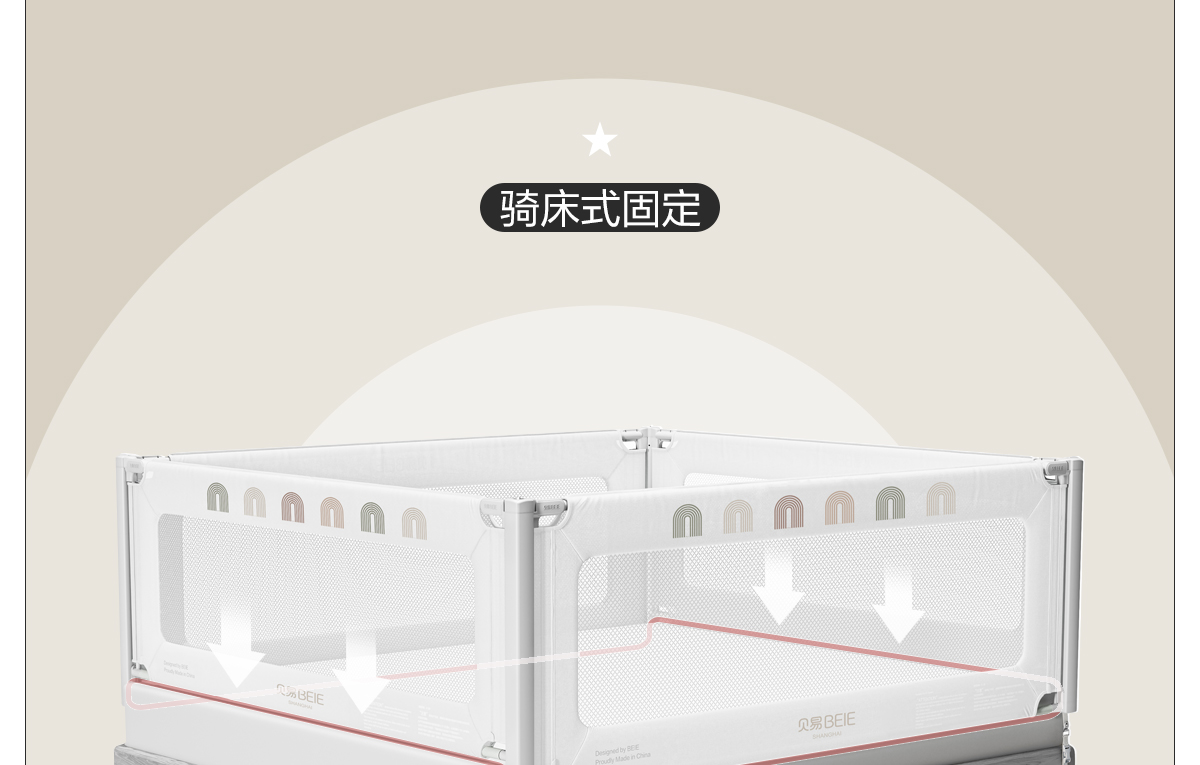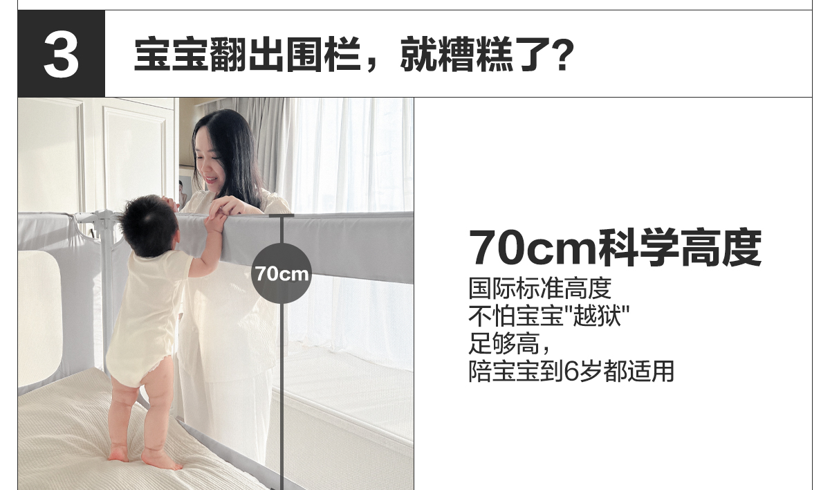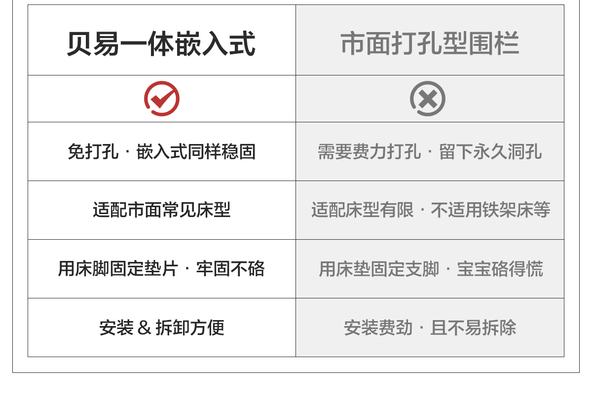 【限量秒杀】贝易一体式床围栏婴儿免打孔床围栏宝宝防摔防护栏床边围栏床围防护栏【下单前,请确认下床垫尺寸厚度以及床头位置是否可以安装】使用过程中,禁止使劲按压上杆以防变形。