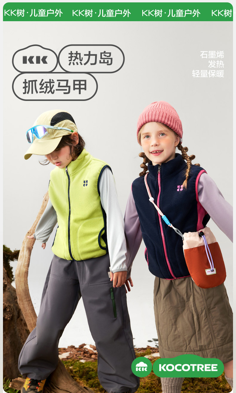 KK树儿童马甲男童女孩外穿洋气背心秋冬保暖摇粒绒外套中大童新款热力岛抓绒马甲