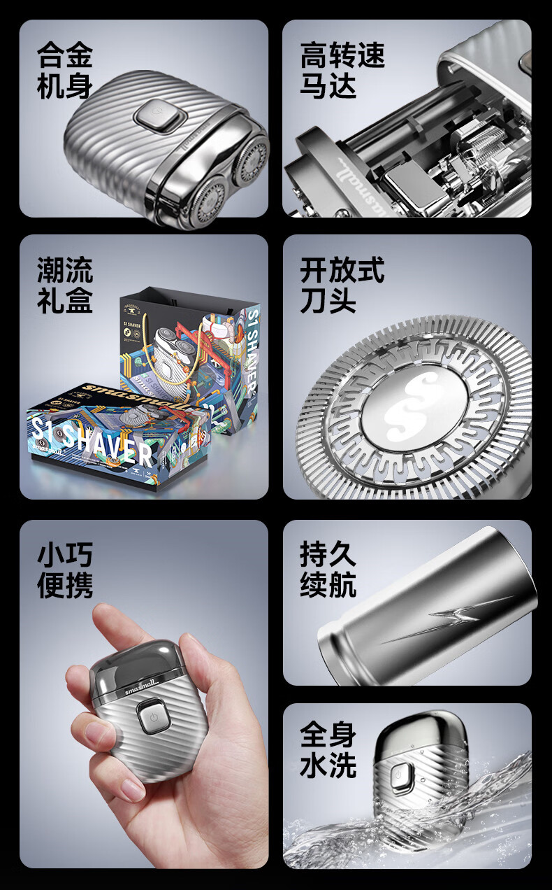 昔马(SMASMALL)电动剃须刀青春版礼盒装 电动便携款男士刮胡刀迷你小巧便携式旅行胡须刀情人节520七夕礼物送男友男生爸爸生日礼物