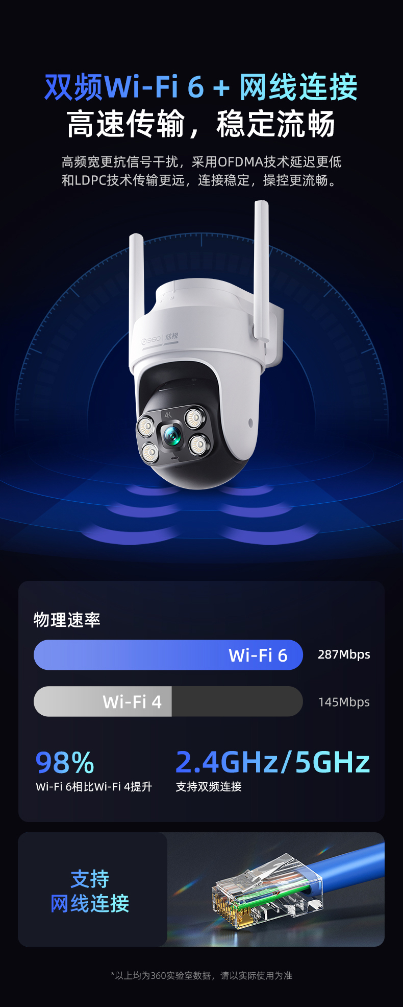 【专属】360 家用监控摄像头智能摄像机 3K云台版500万双频wifi超高清星光微光全彩双向通话母婴看护 云台8Max AI版