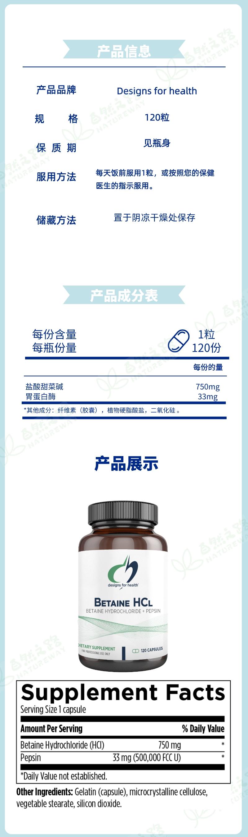 美国健康设计补充胃酸盐酸甜菜碱Betaine HCL120粒