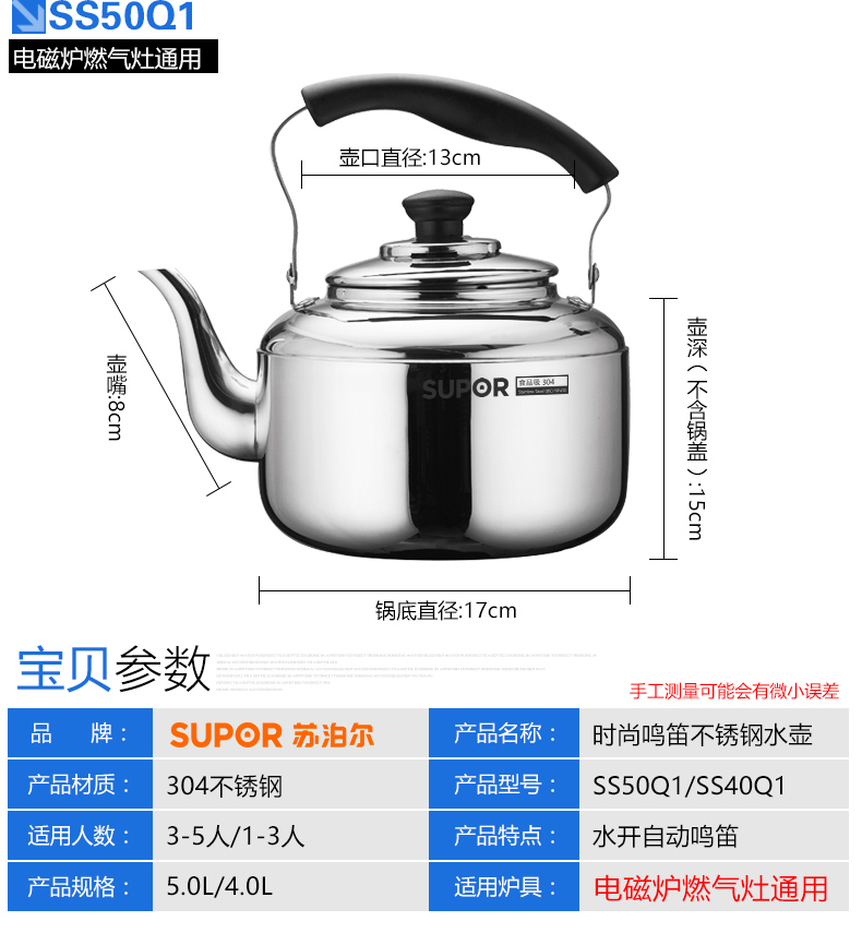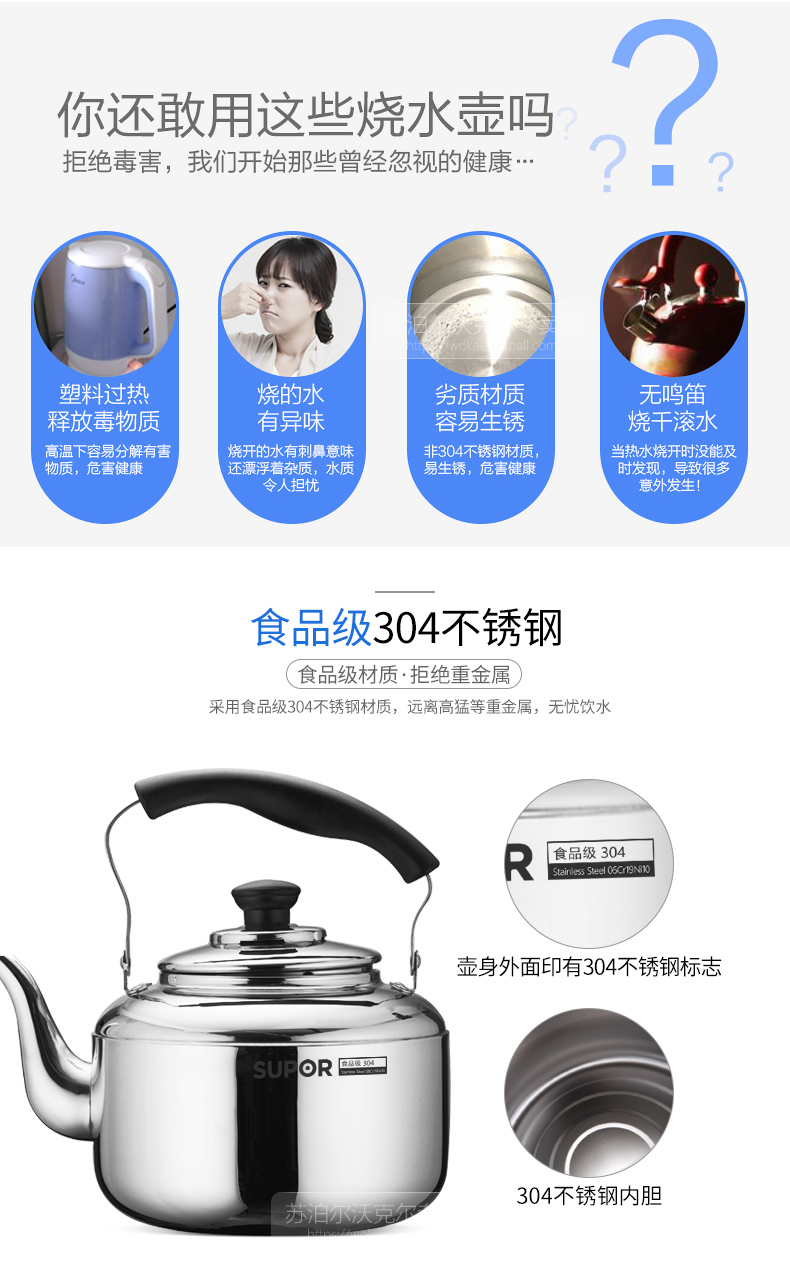 苏泊尔5升烧水壶 304不锈钢水壶 SS50Q1 电磁炉燃气通用