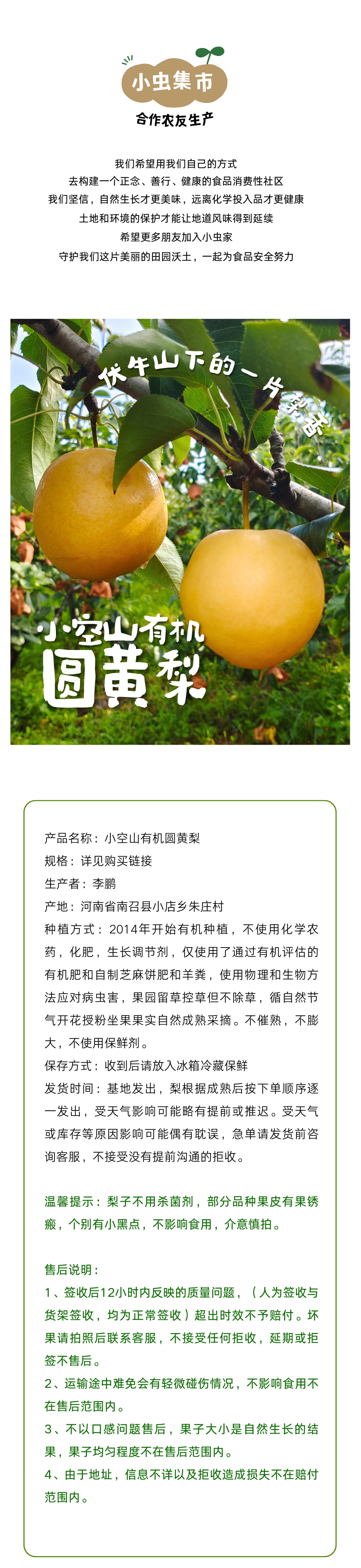 【标果每箱赠送一袋100克秋梨膏】小空山有机圆黄梨 | 合作农友生产,来自河南南召县,生产者:李 鹏 *【公平贸易农人定价】