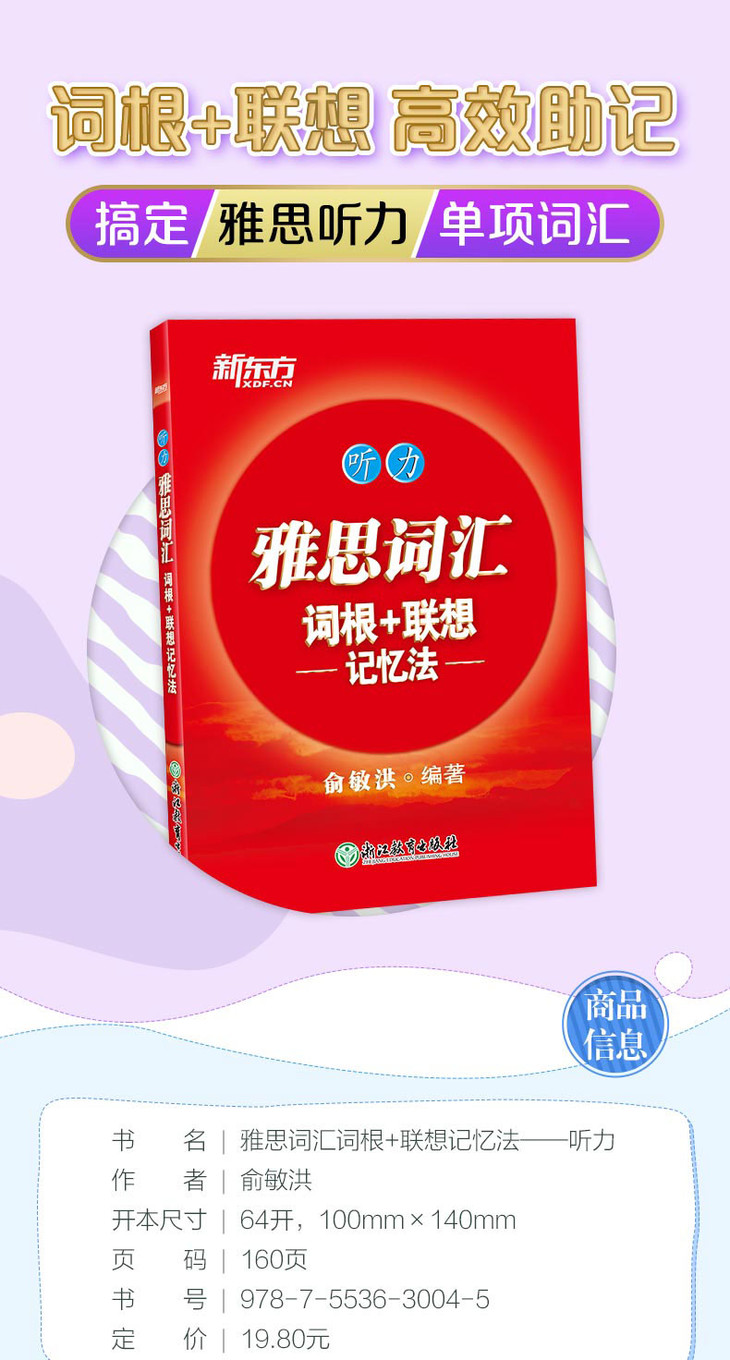 【新东方】雅思词汇词根+联想记忆法 听力 俞敏洪 雅思听力红宝书 IELTS听力词汇书 雅思听力单词释义+真题例句