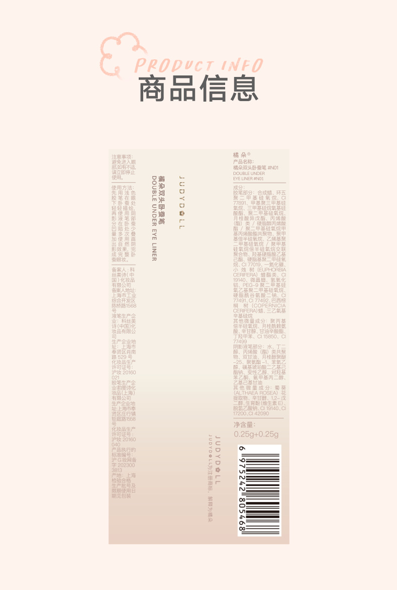 Judydoll橘朵砍刀双头卧蚕笔眼线胶笔提亮阴影液哑光卧蚕阴影笔 心选到家