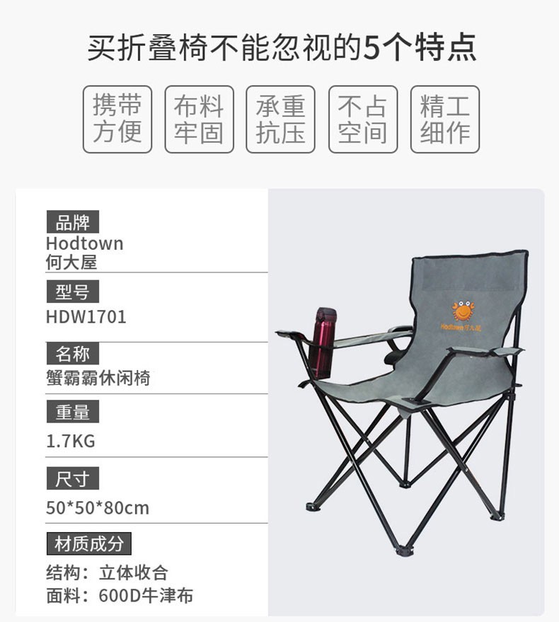何大屋 折叠椅 户外便携蟹霸霸休闲椅 HDW1701