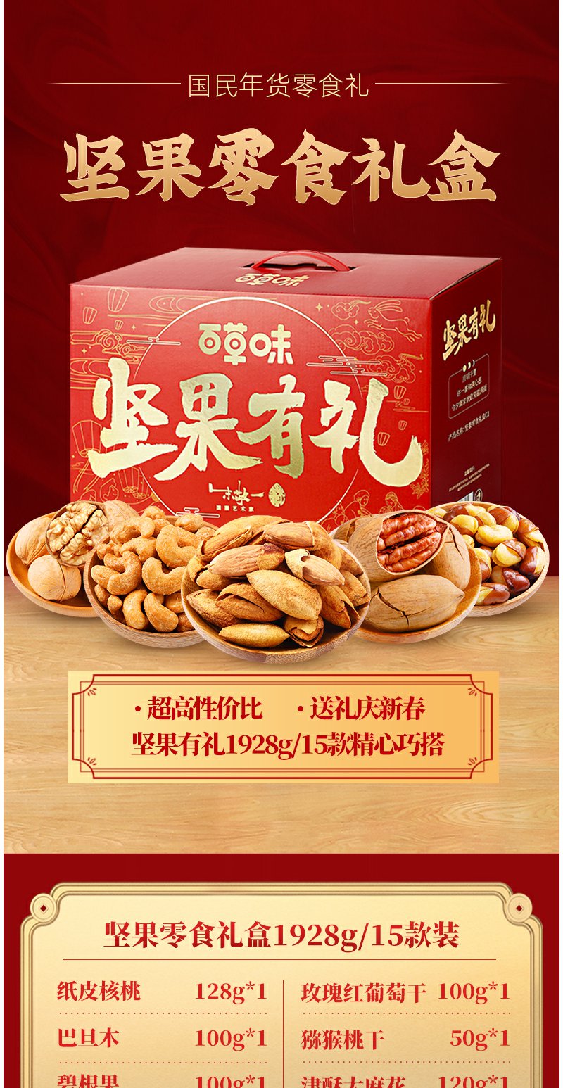 百草味 坚果有礼大礼包 干果混合装零食礼包 1928g