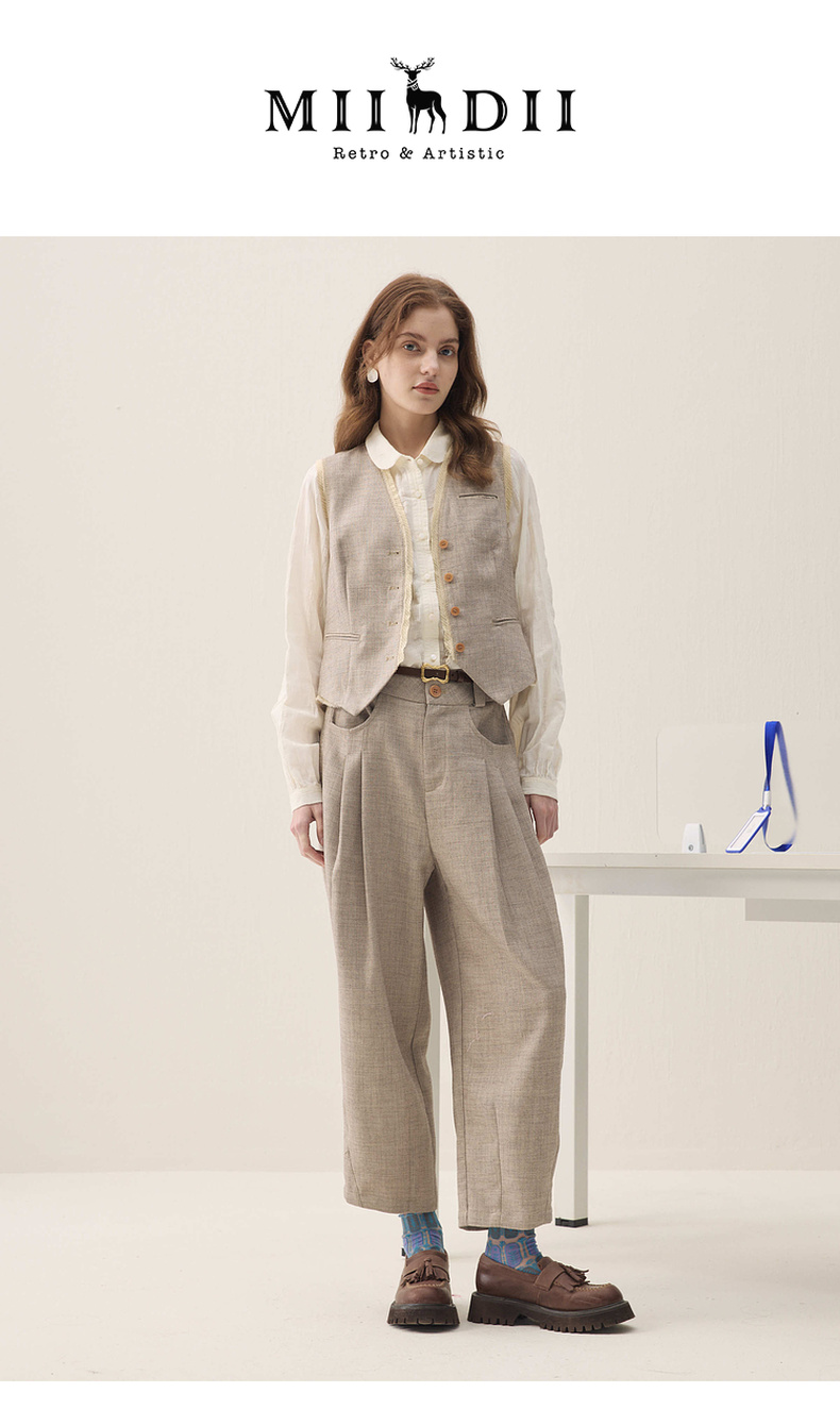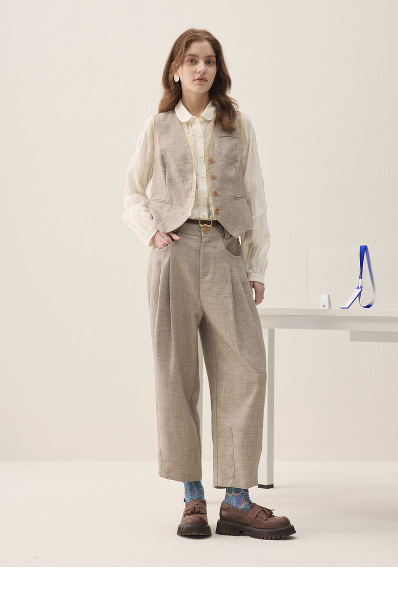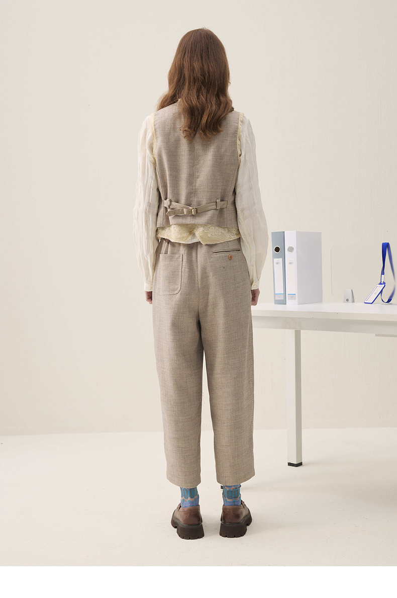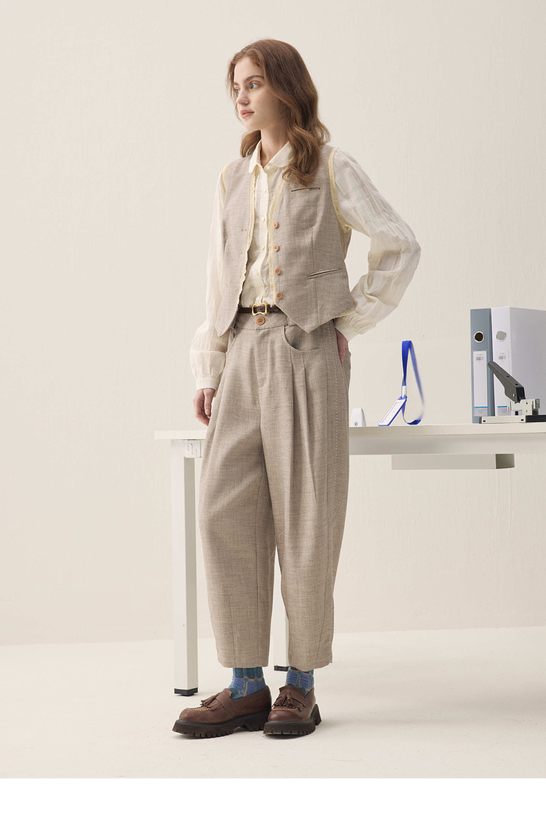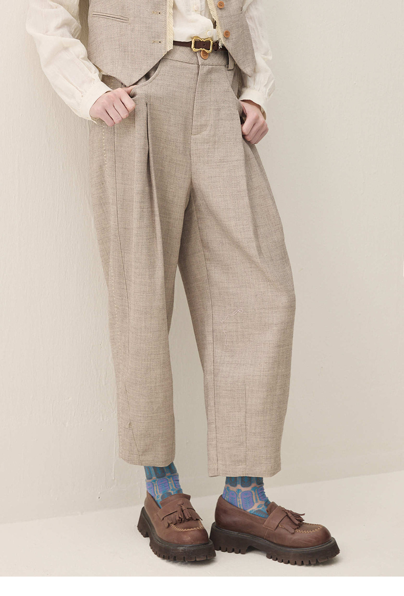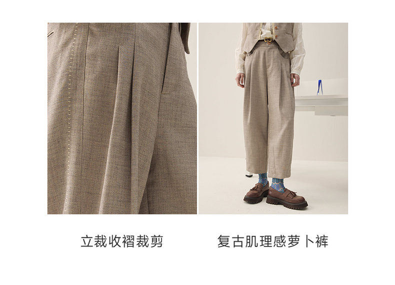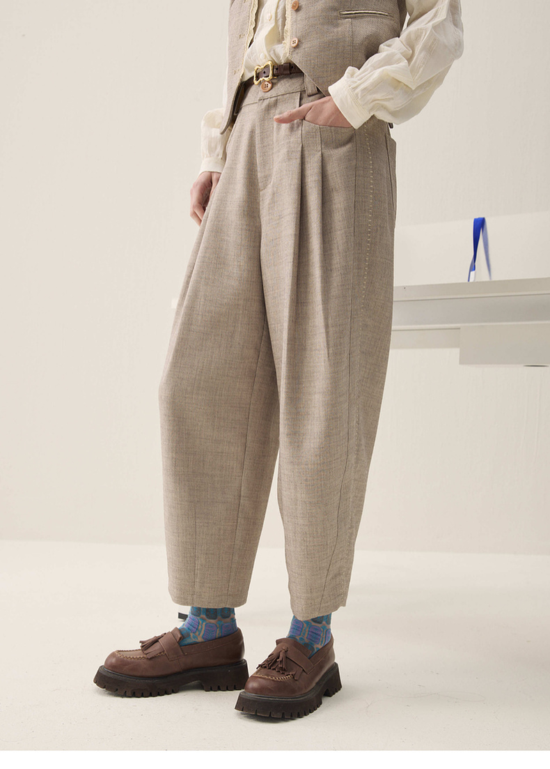 谜底萝卜裤长裤2026年春季新品立裁收褶后腰松紧裤子女261MK0252