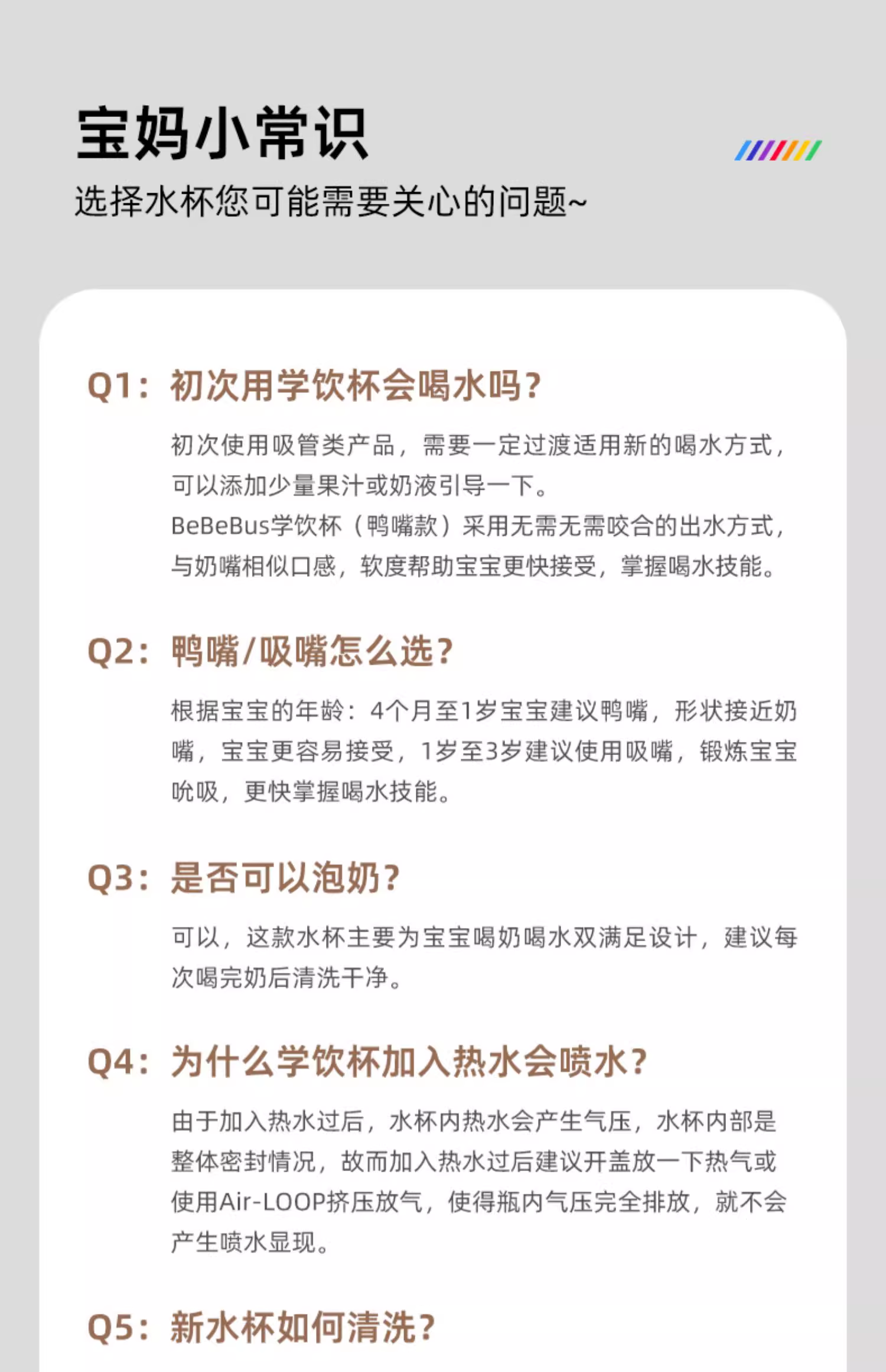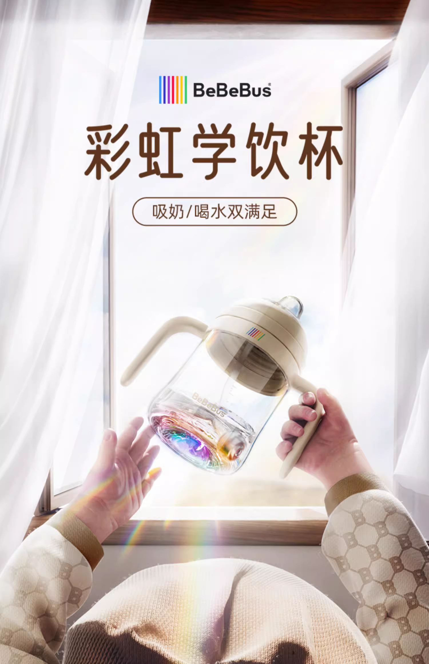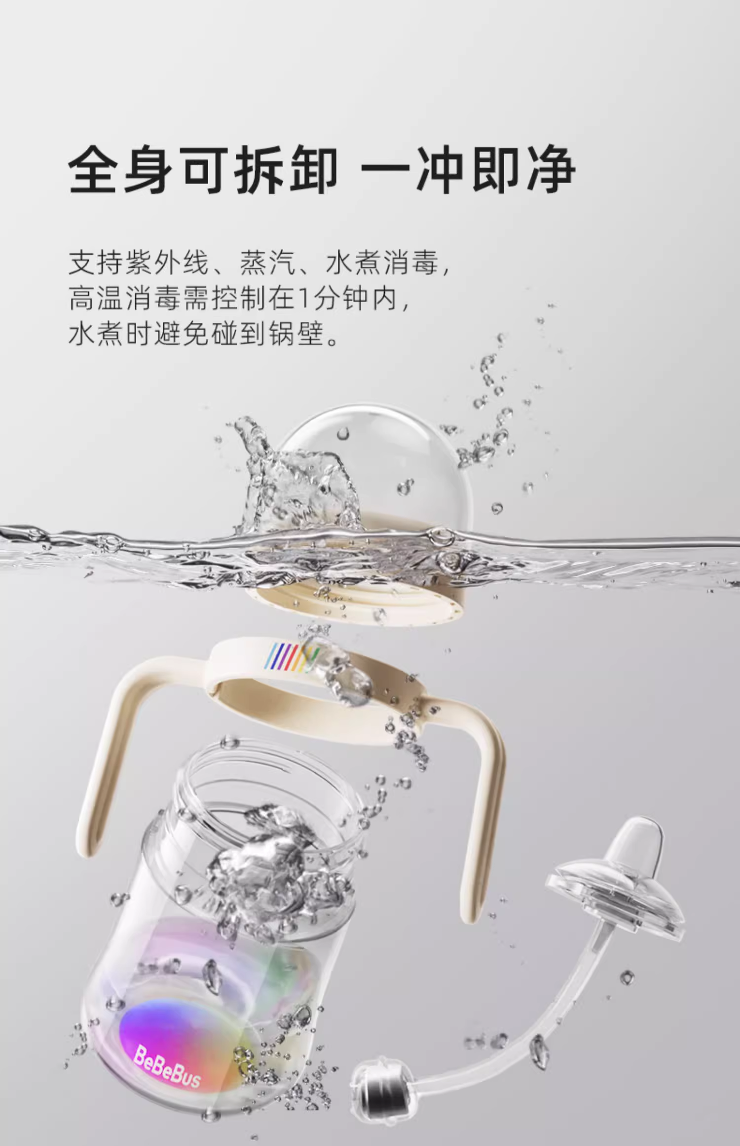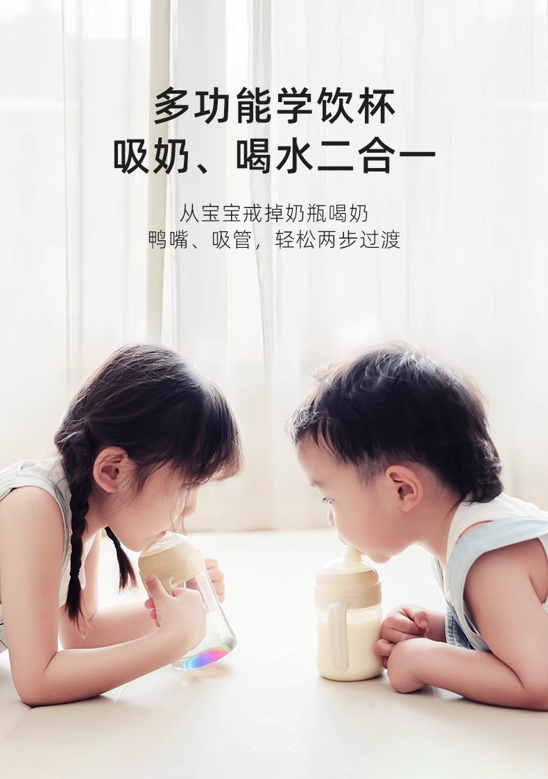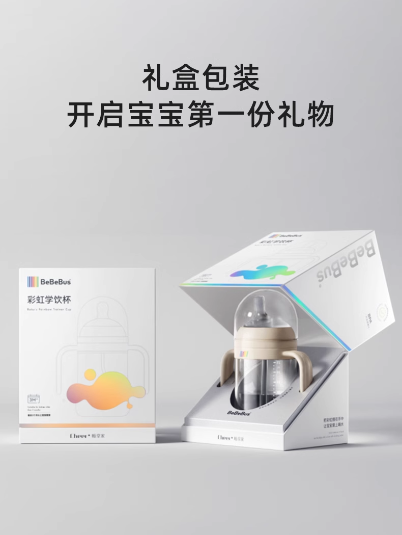 BeBeBus彩虹奶瓶杯学饮杯宝宝婴儿水杯吸管杯 儿童6个月以上鸭嘴杯