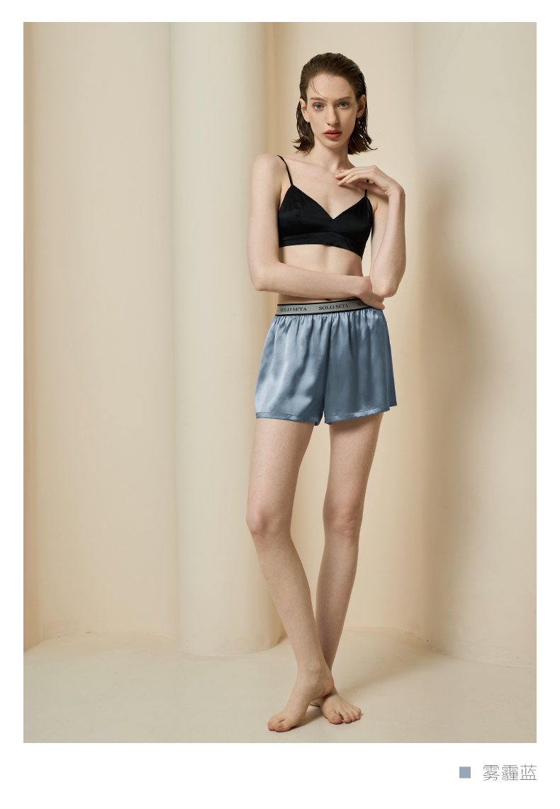 Solo seta真丝睡裤短款桑蚕丝家居服丝绸短裤时尚可外穿秋冬