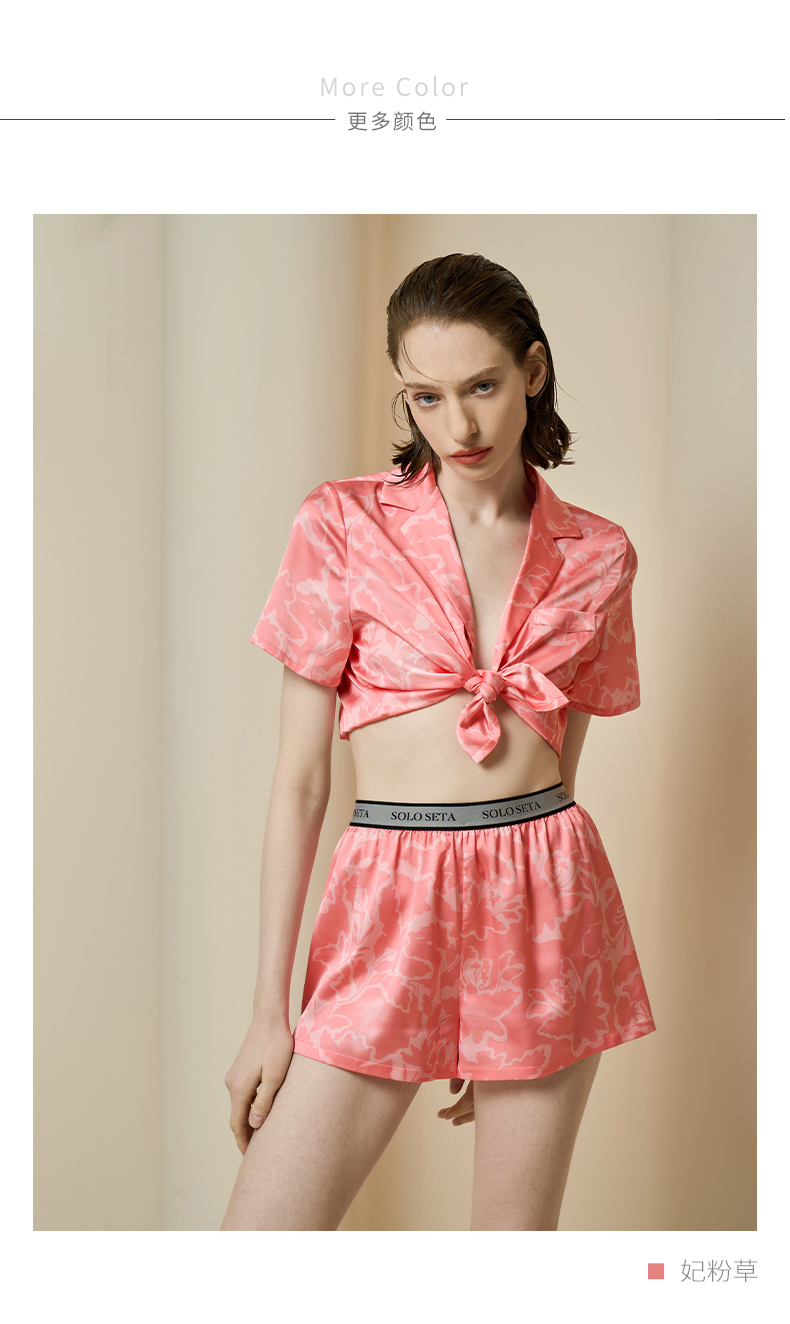 - soloseta专注于真丝织物,灵感源自意大利语,中文含义为“只做真丝”的意思。让睡衣变时尚,居家和外出瞬间切换,使其更具有出街,度假,参加宴会等功能。