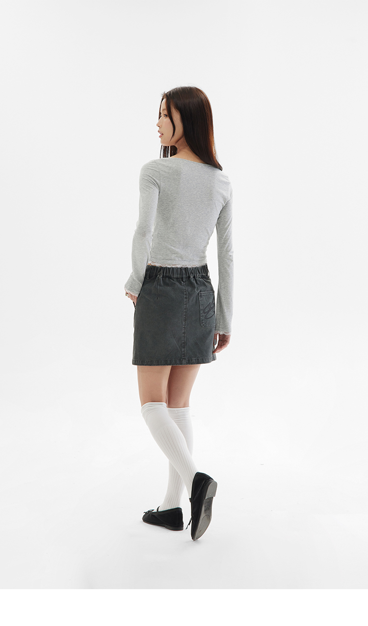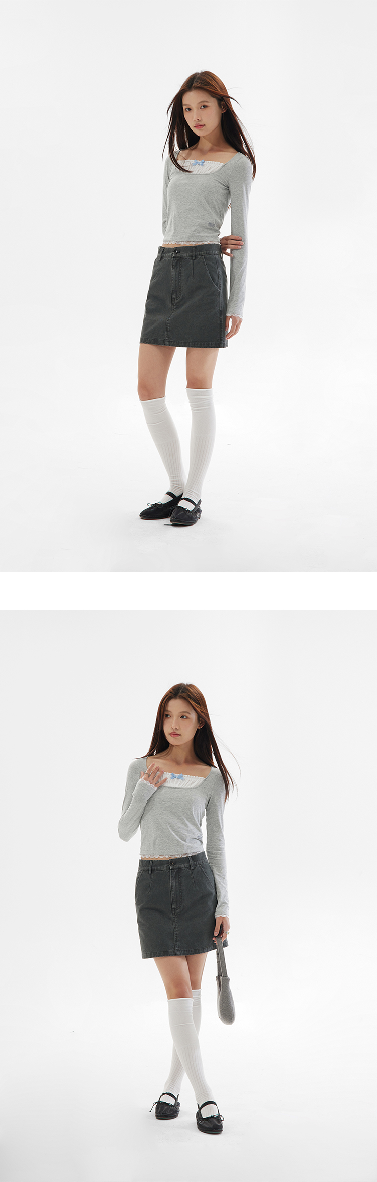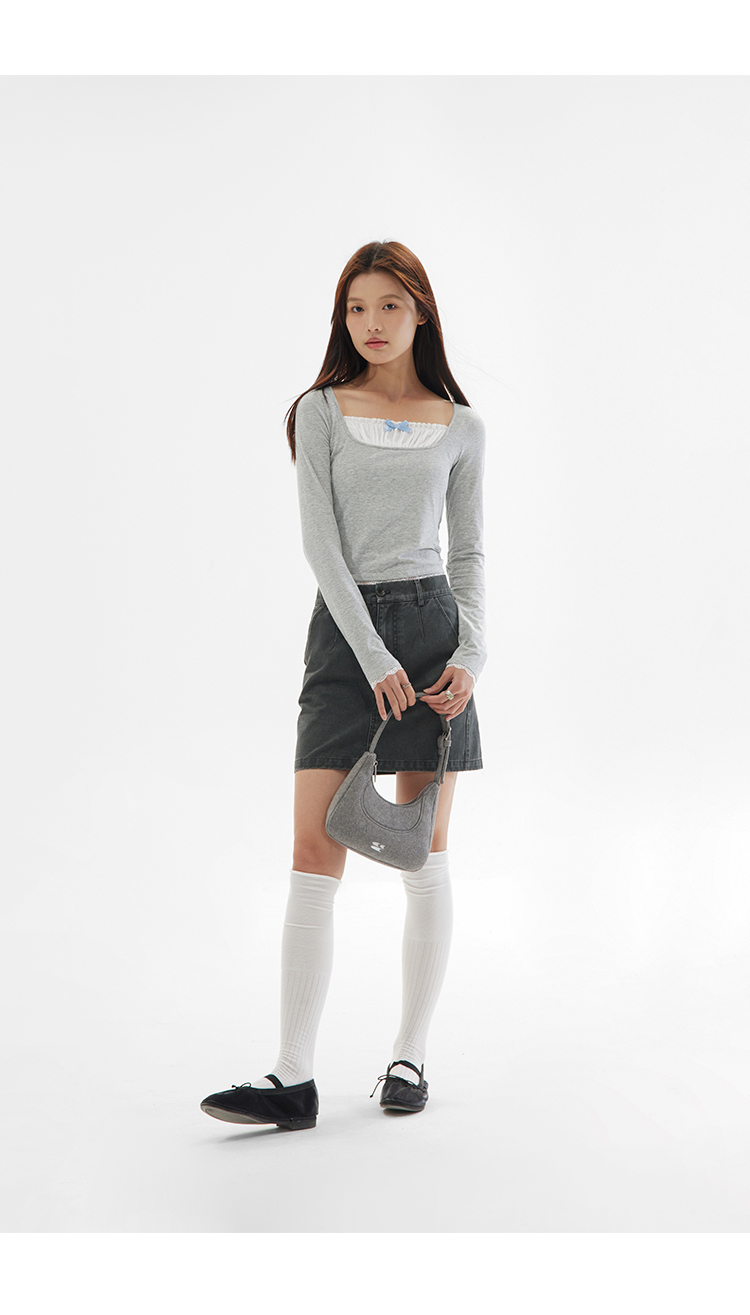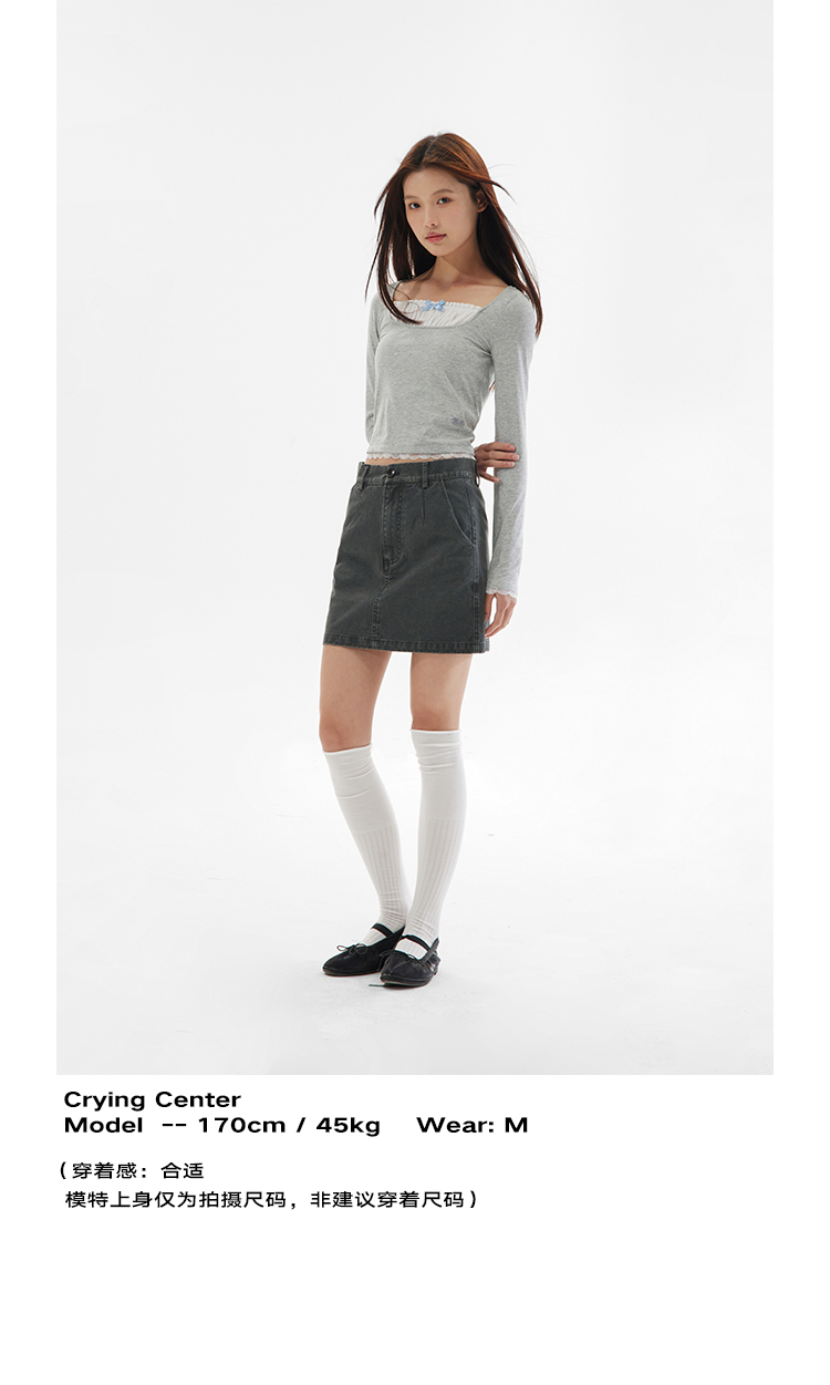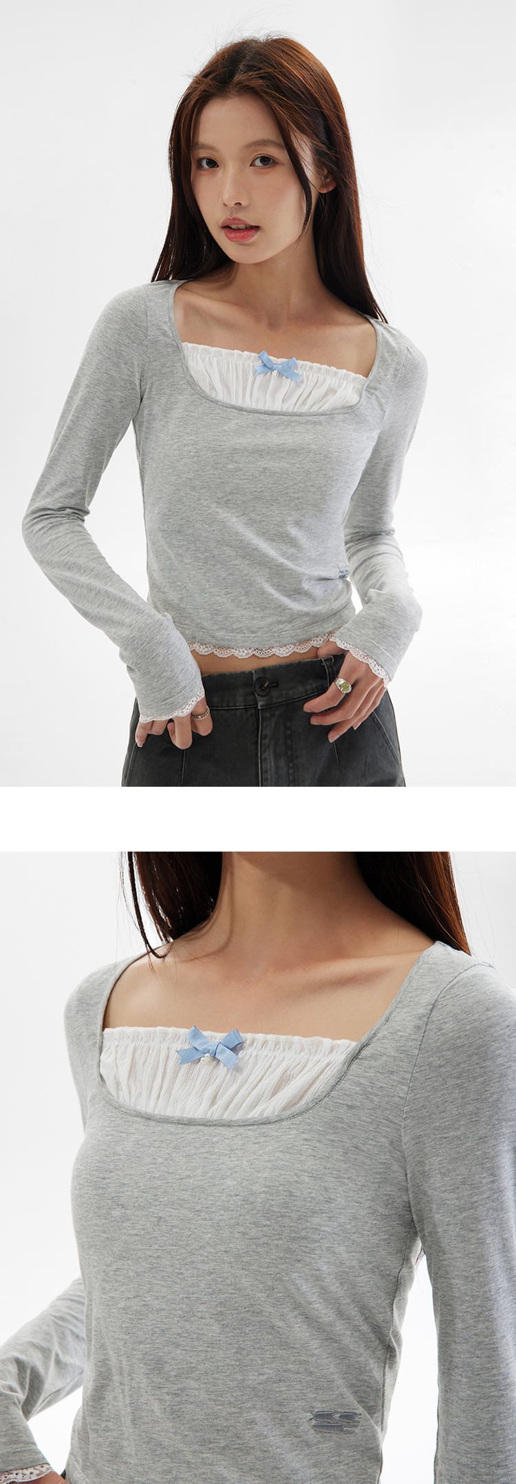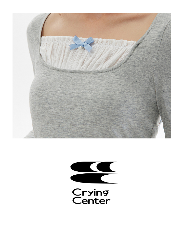 CryingCenter 花灰蕾丝拼接芭蕾风方领上衣长袖tee 哭喊中心
