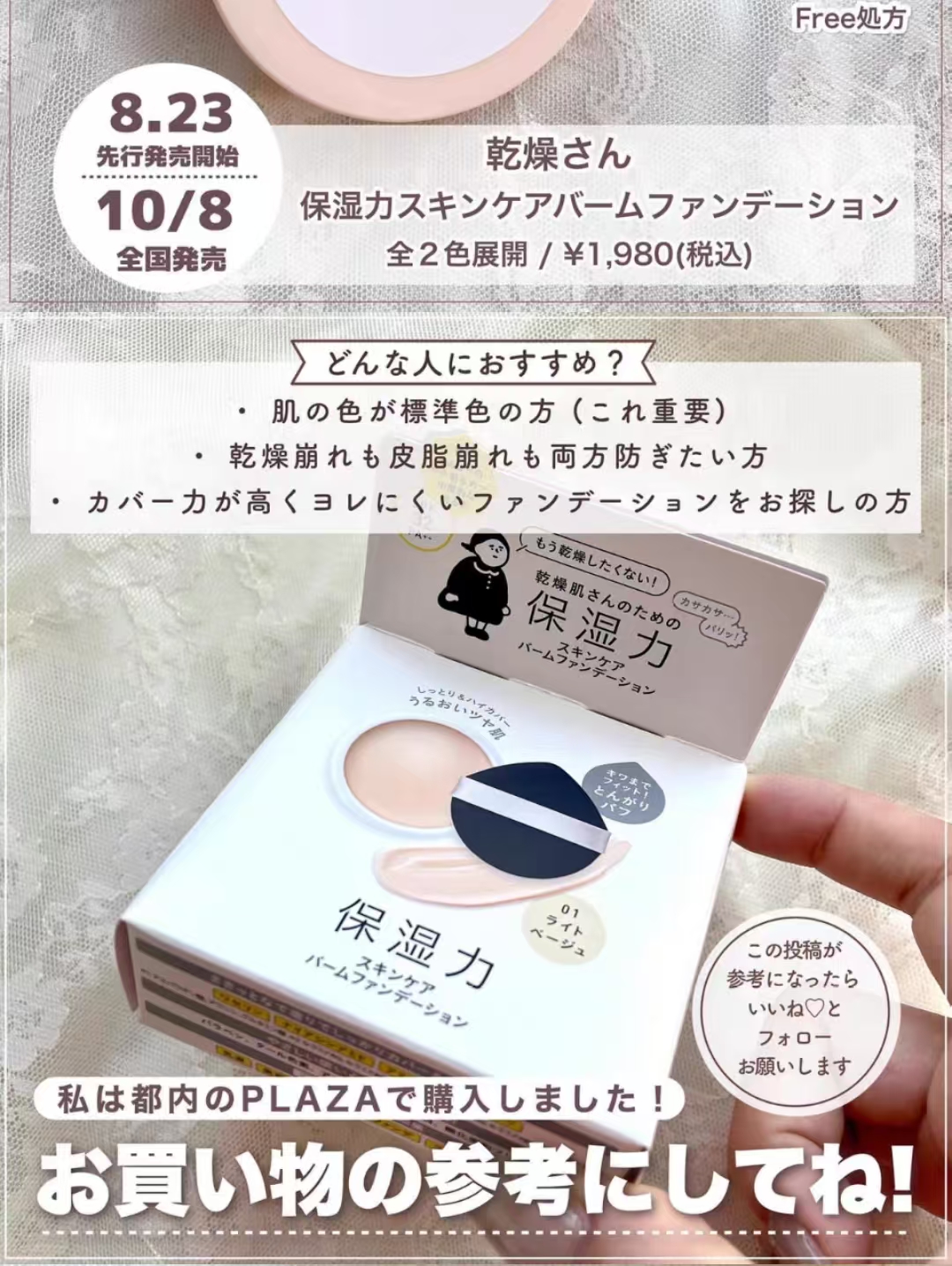 【保税仓】BCL/碧芯珞KANSOSAN保湿护肤粉底限定款02 自然米色/限定款01 浅米色12g
