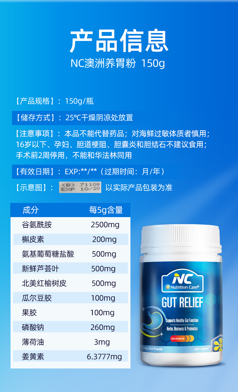 【保税仓】Nutrition Care 姜黄谷氨酰胺粉150g/瓶
