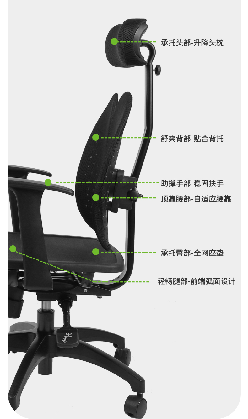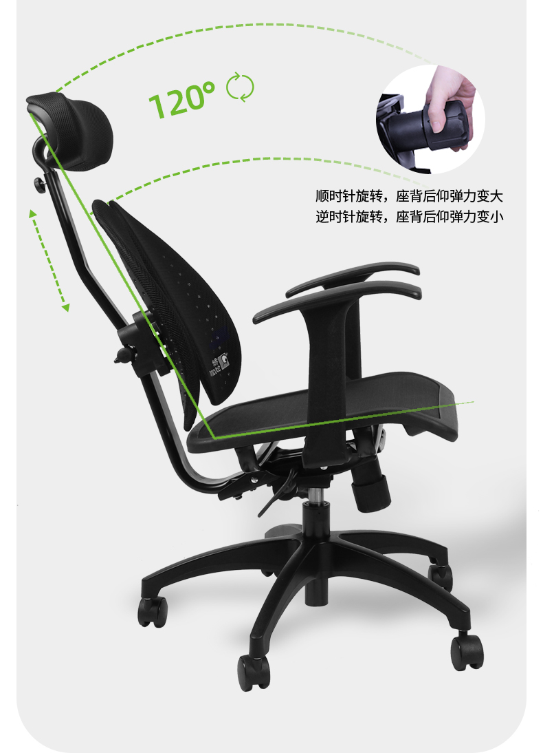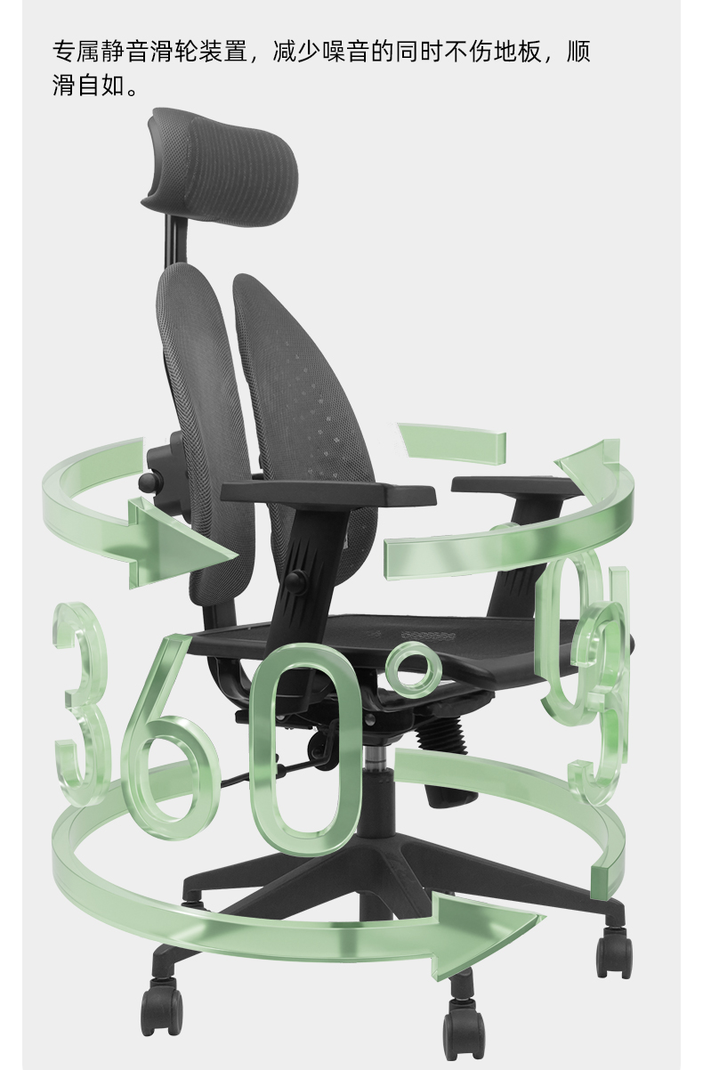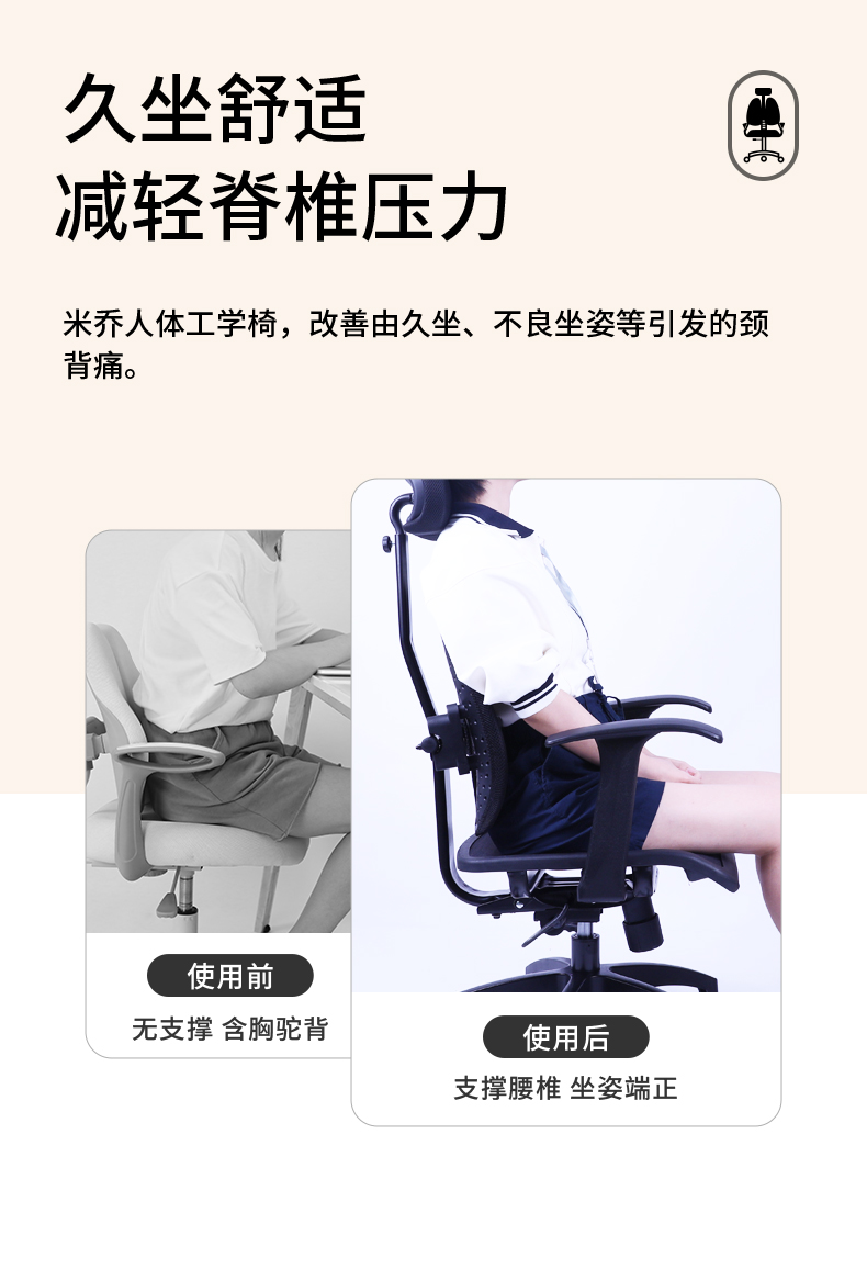 米乔人体工学双背椅家用电脑椅减压老板椅可躺坐透气办公椅