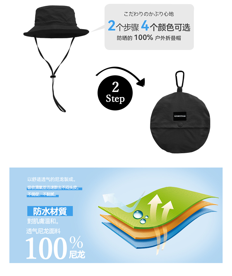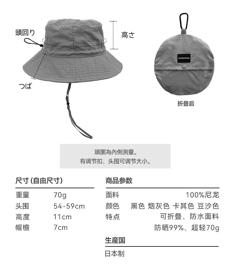 KAWATANI 香羽谷 折叠防晒帽 卡其色