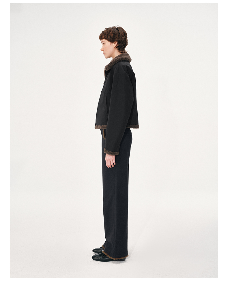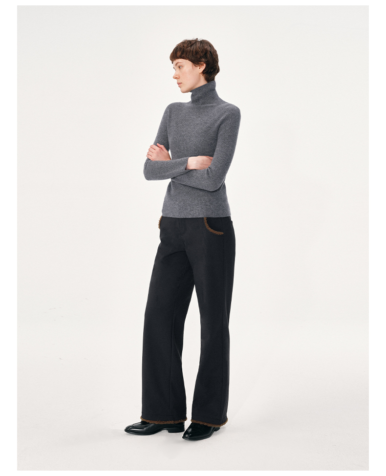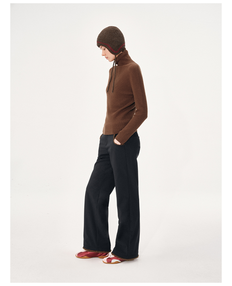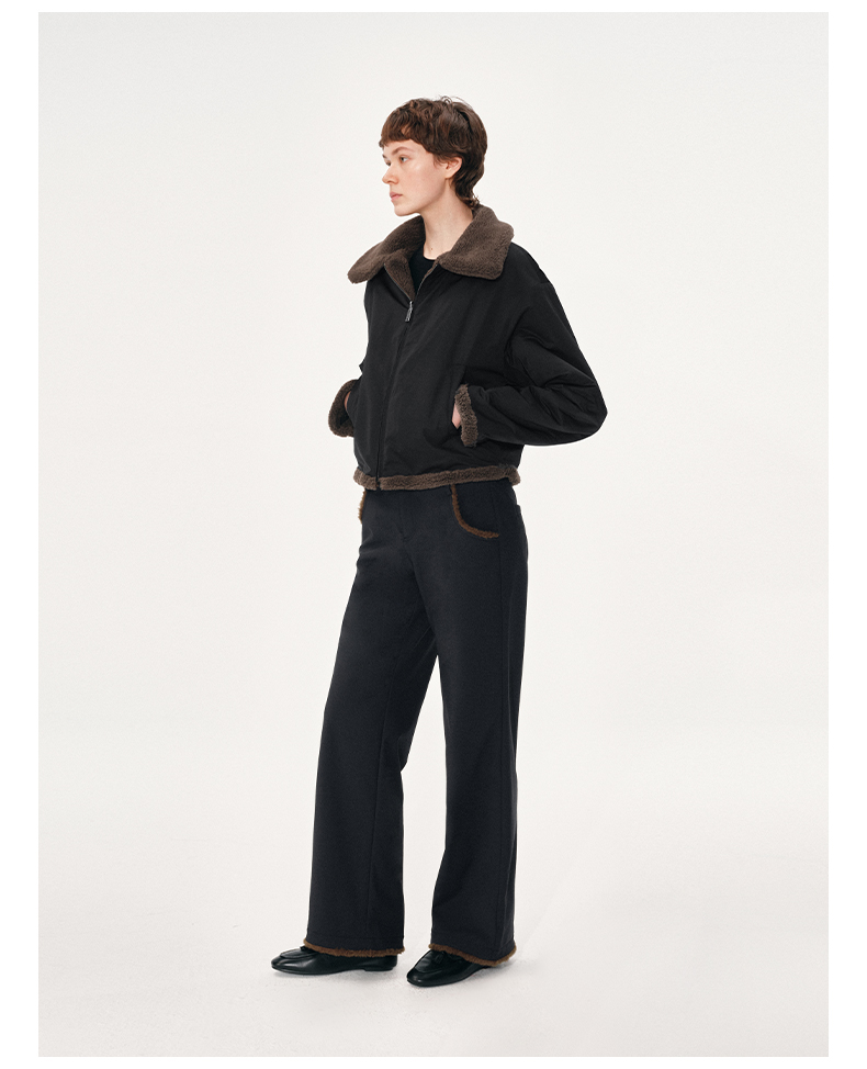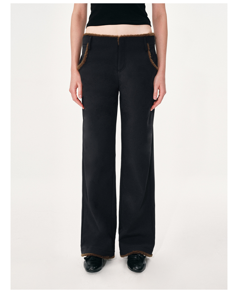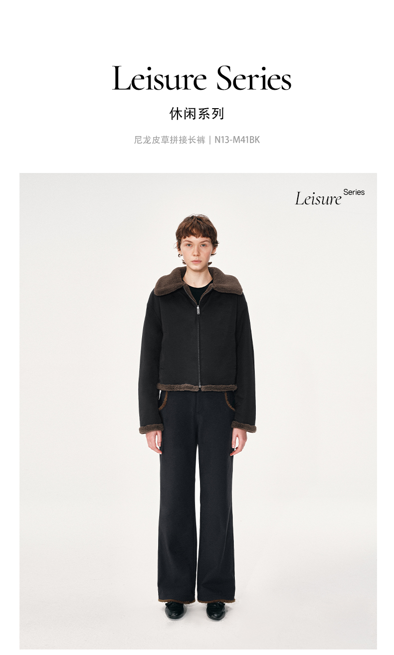 NUTH黑色复古拼接撞色休闲微喇裤女