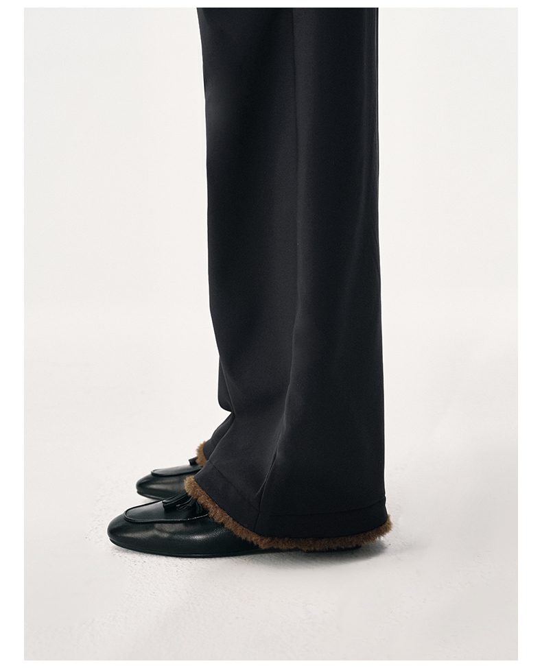 NUTH黑色微喇长裤修身显瘦脚口开叉设计感弹力喇叭裤