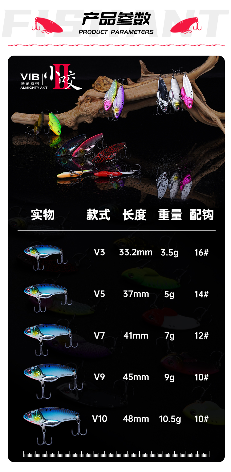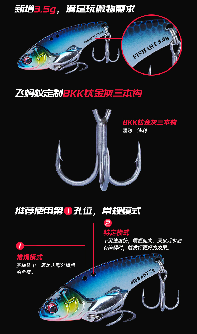新品FISHANT飞蚂蚁小咬二代远投路亚饵金属vib亮片翘嘴鳜鱼鱼饵