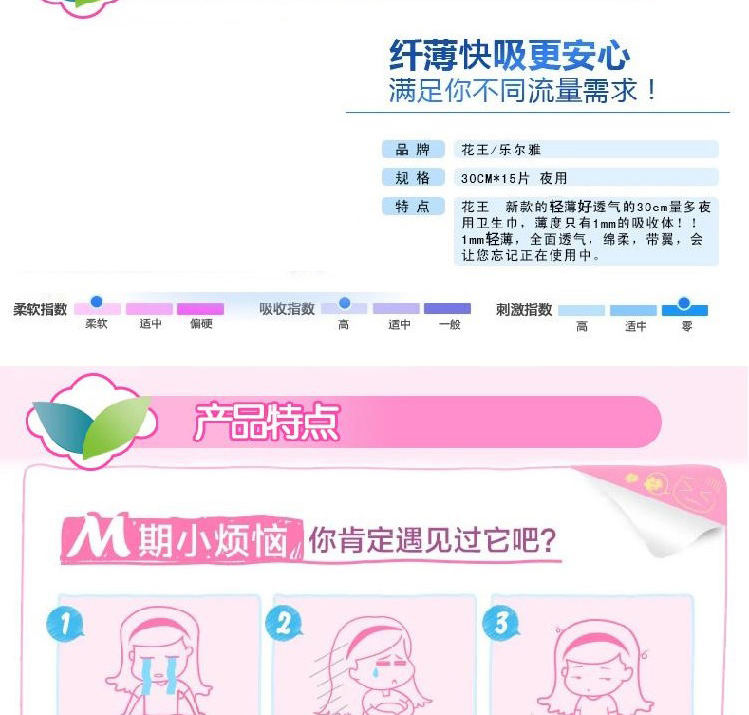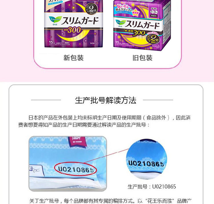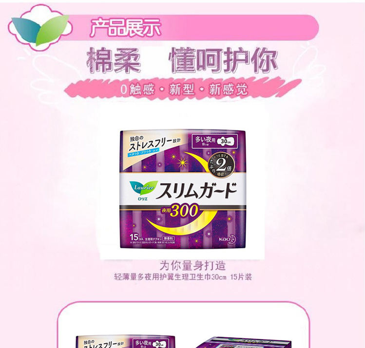 【3包装】KAO花王 乐而雅S系列超薄夜用卫生巾30cm*15片/包