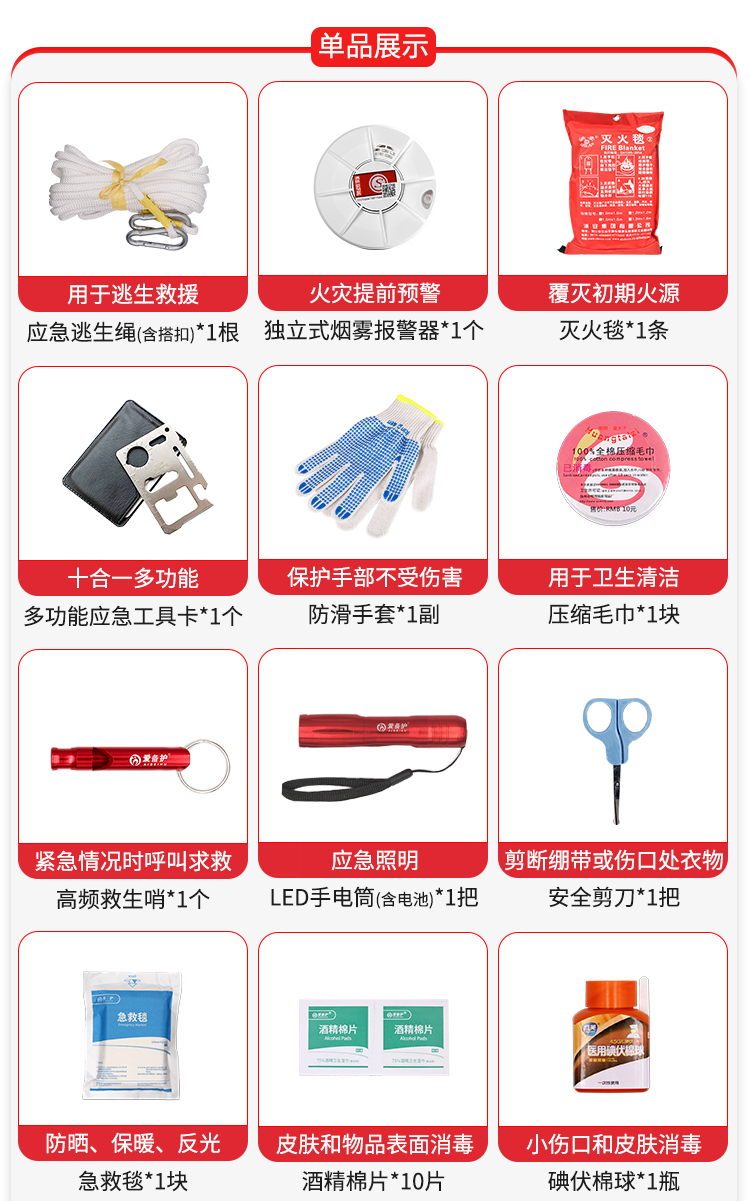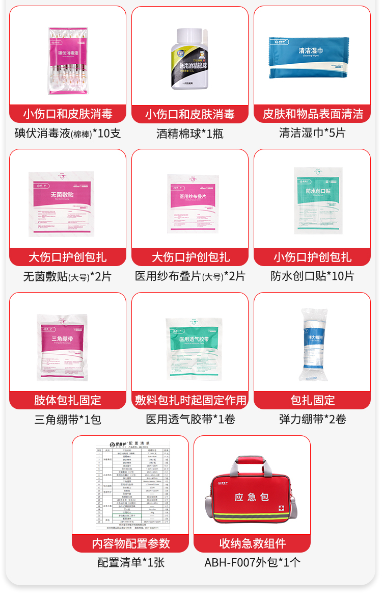 爱备护 消防应急工具包 车载救援急救包 学校工厂户外生存救急包 ABH-F007A 红色 单肩手提