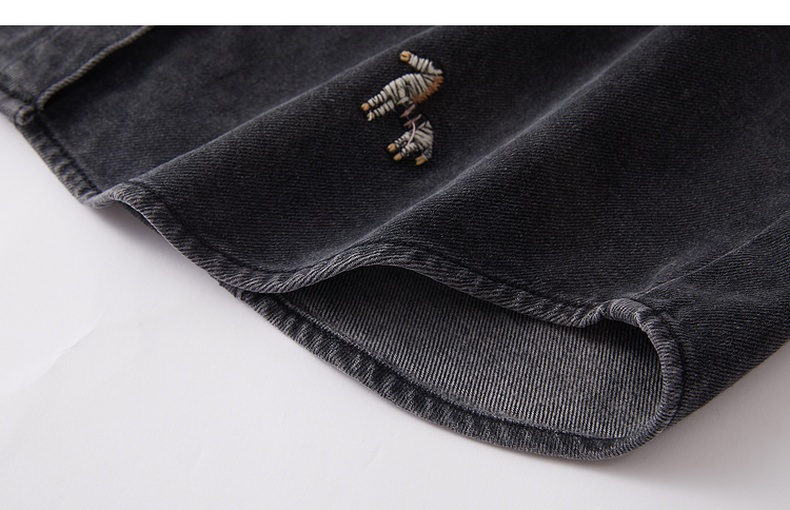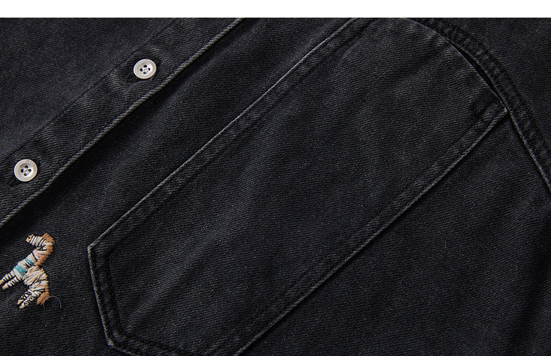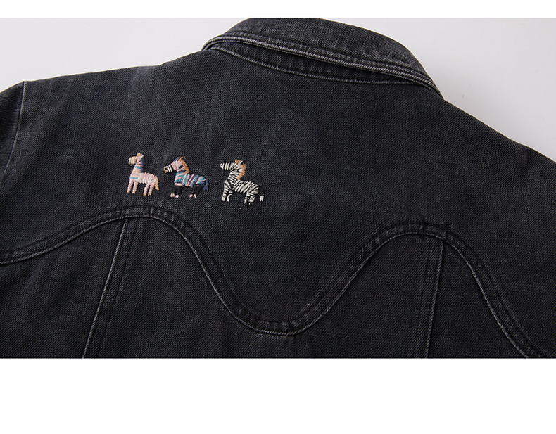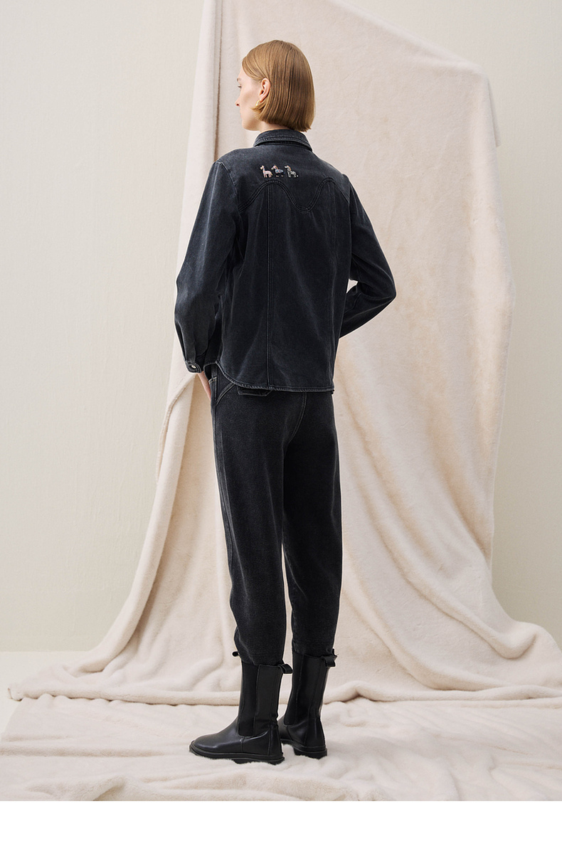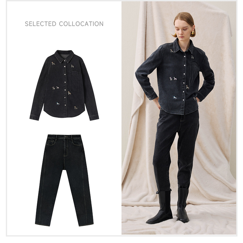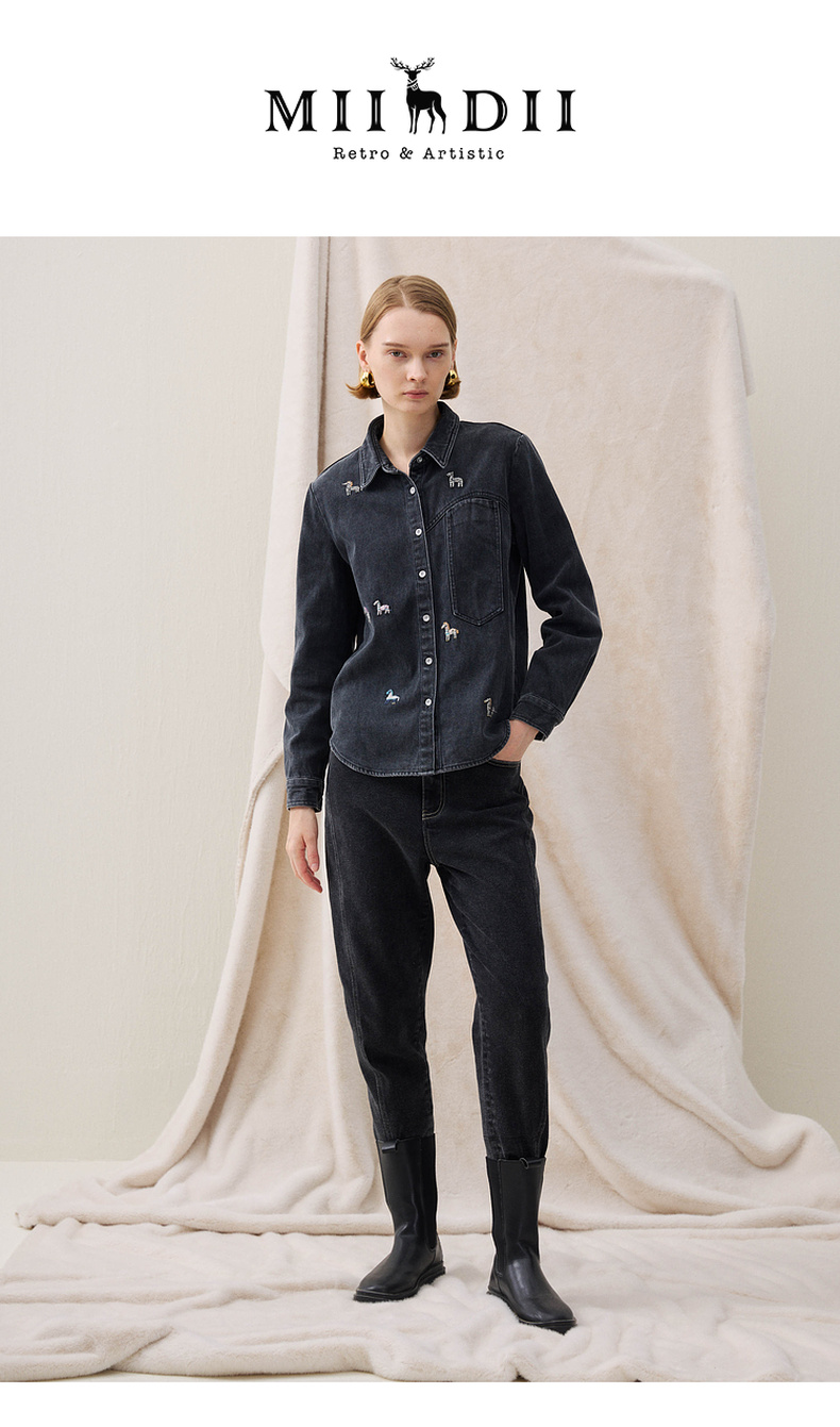 谜底黑色牛仔衬衣长袖2025冬季新品斑马绣花修身衬衫女254MC1719