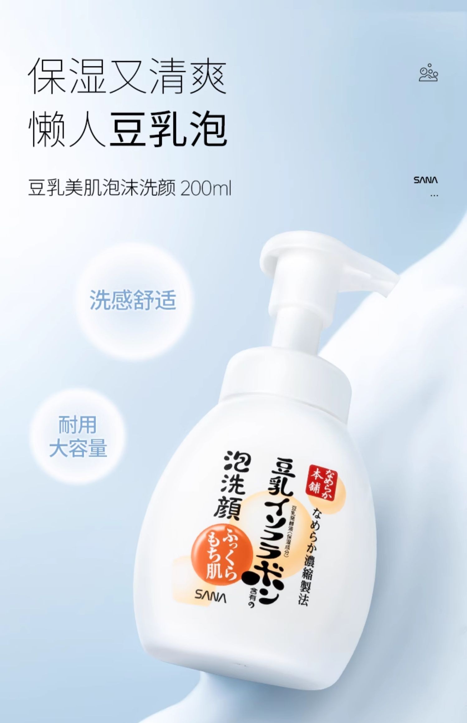 【保税仓】SANA/莎娜美白新版豆乳泡沫保湿补水洗面奶200ml