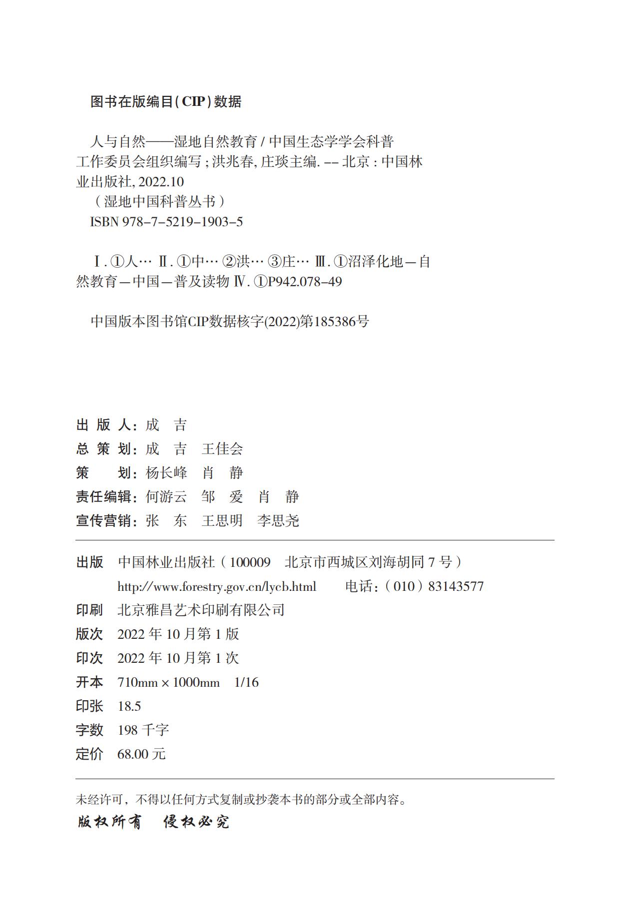 人与自然——湿地自然教育 湿地中国科普丛书 洪兆春,中国生态学学会科普工作委员会 1903 中国林业出版社