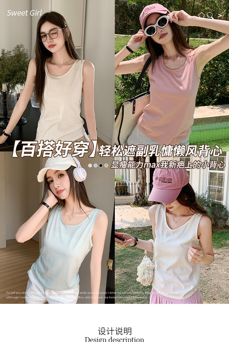 (59元买一送一 设满减拍2件立减)“云感棉”氧气背心 宽肩背心女春夏外穿宽松遮肉打底内搭圆领无袖上衣