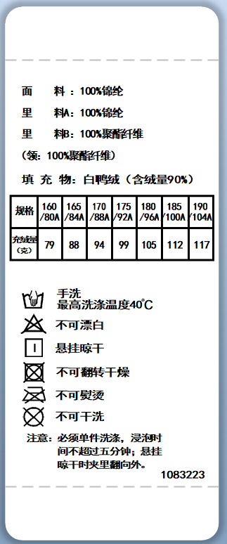 特别提示:这是按照老国标GB/T 14272-2011生产的羽绒服,标注的90%是含绒量,而不是绒子量。实际报告检测绒子含量为:81%。介意者慎拍!!!