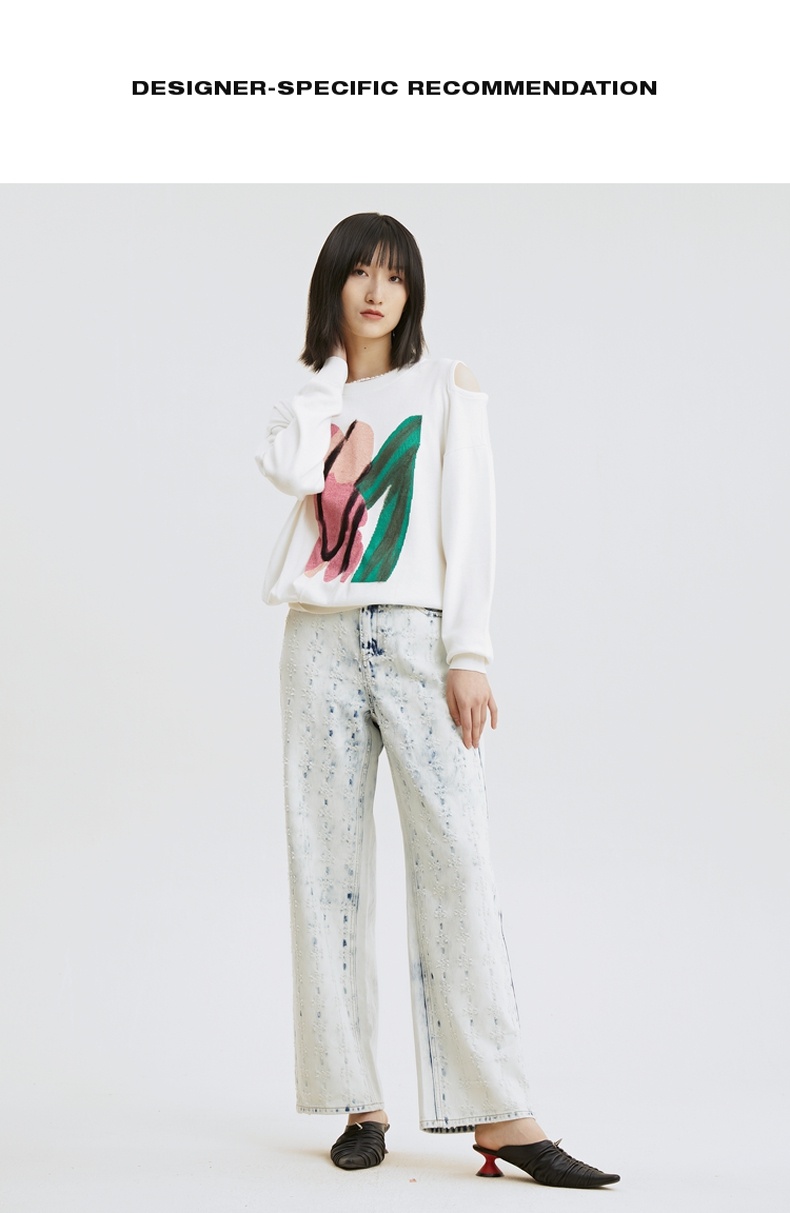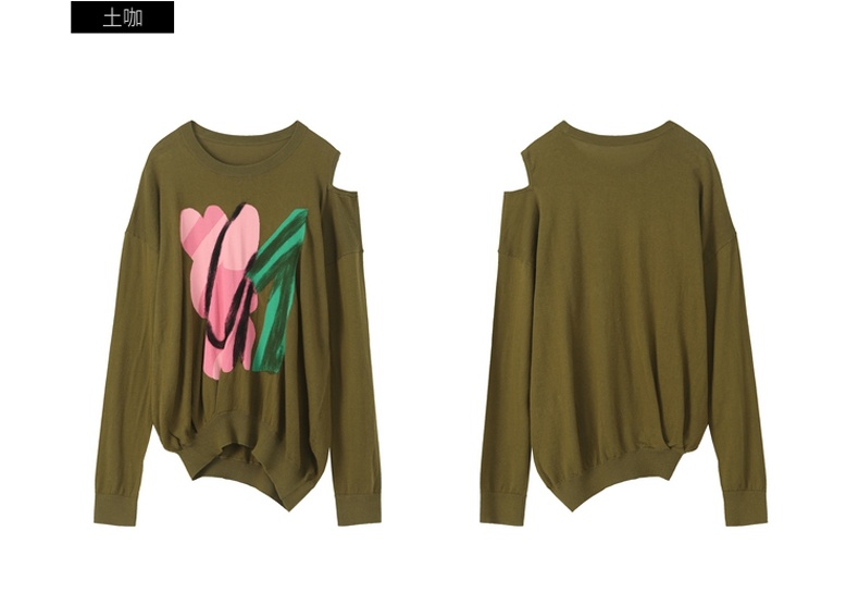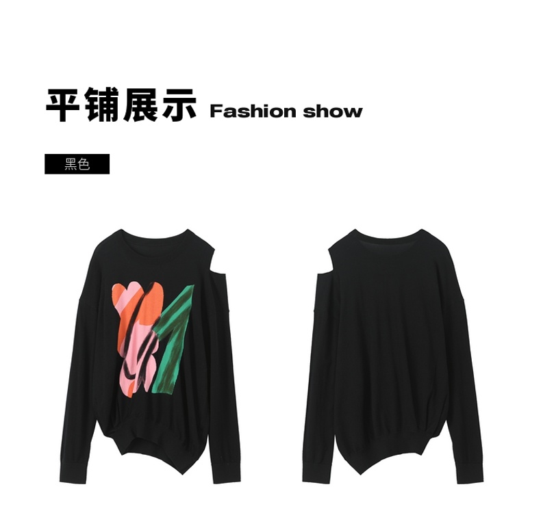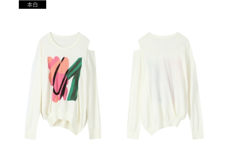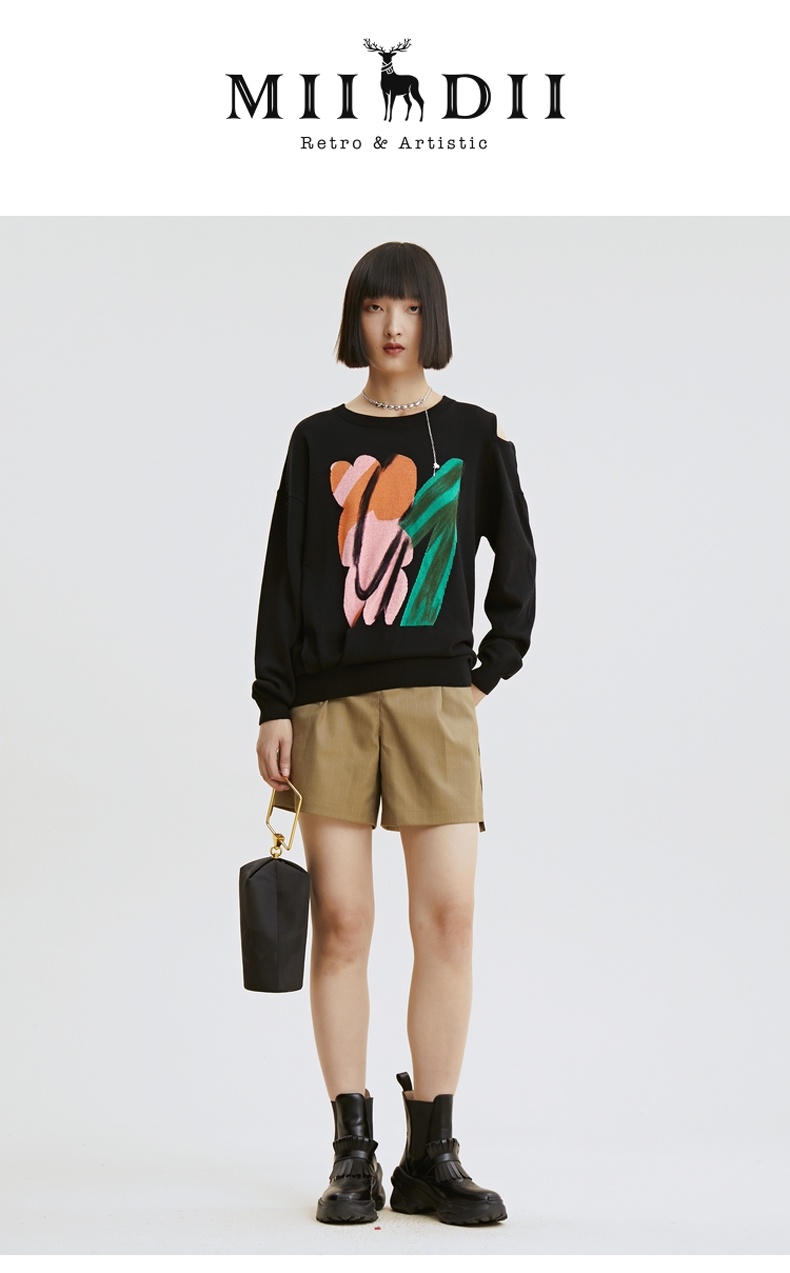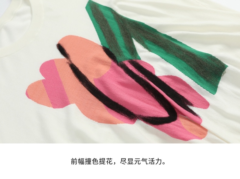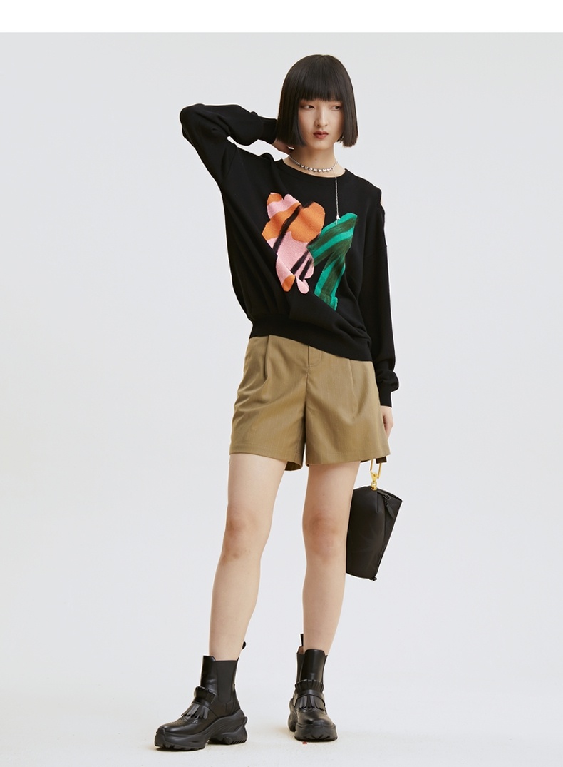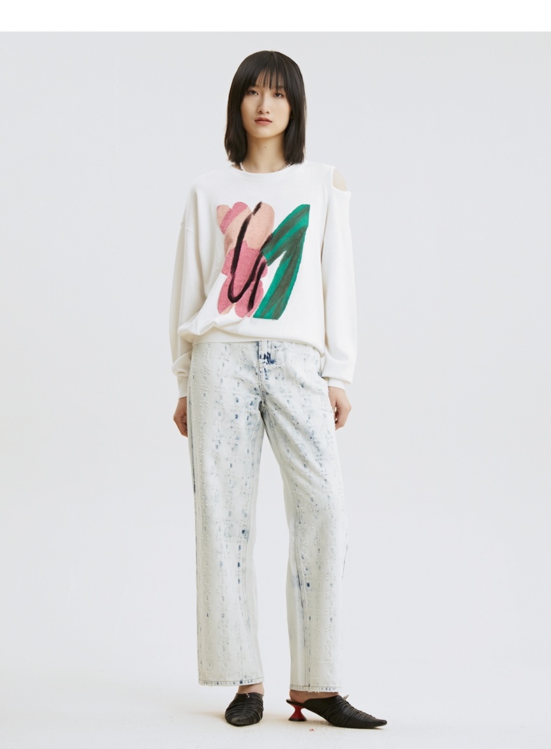 谜底长袖针织衫2021秋季新款涂鸦提花宽松圆领套头衫女213MZ2041