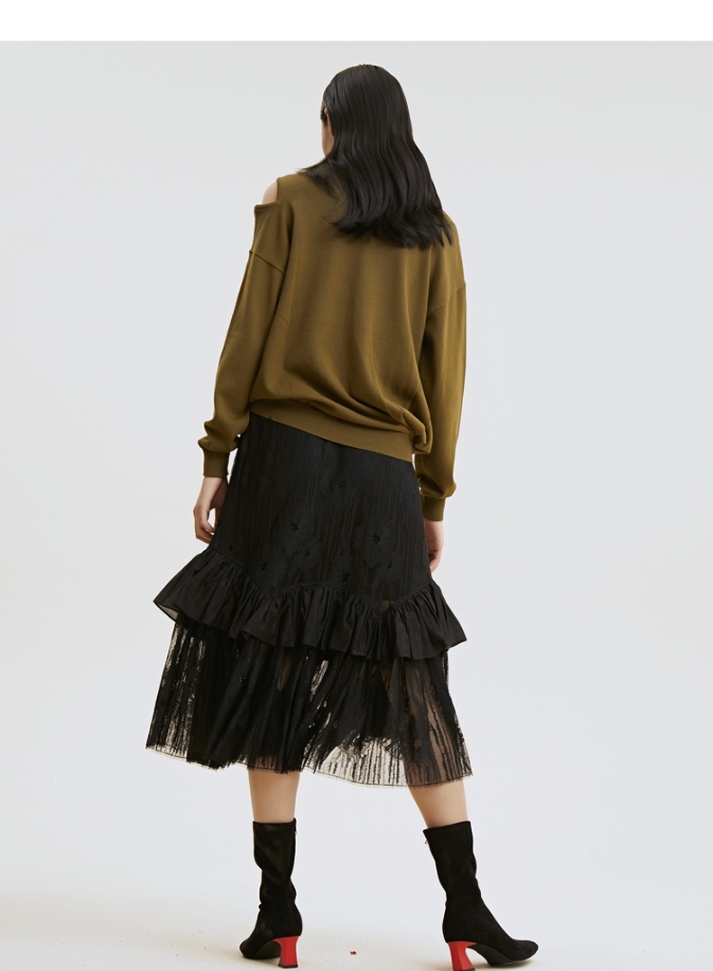 谜底套头针织衫长袖2025年冬季新品轻盈保暖圆领绣花女254MZ1890