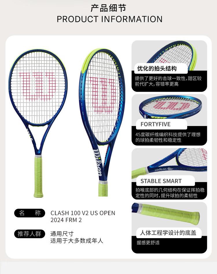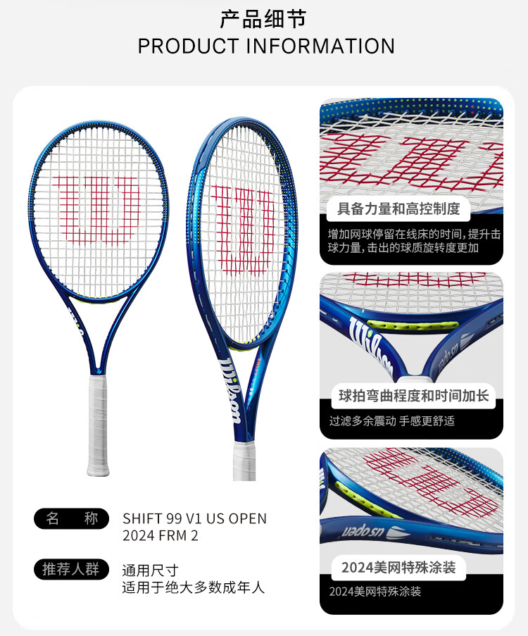威尔胜(Wilson)美网联名限定网球拍全碳素一体成人专业拍 WR166411U2