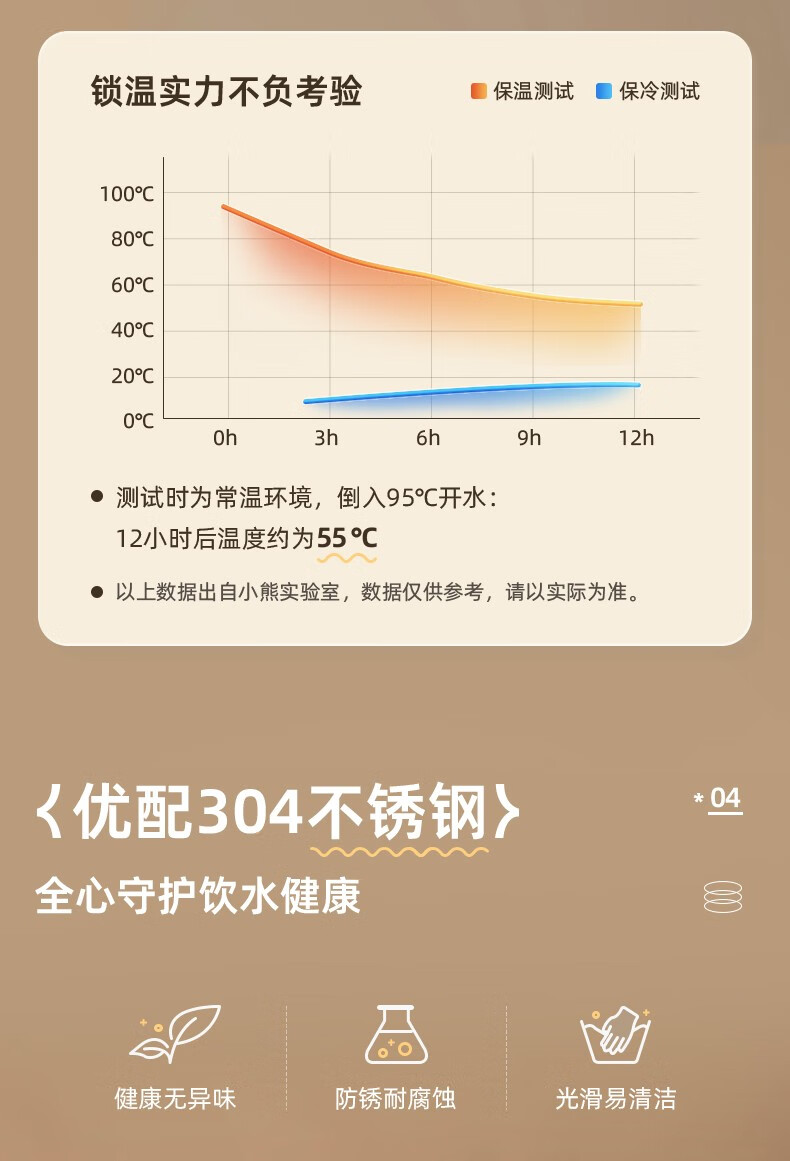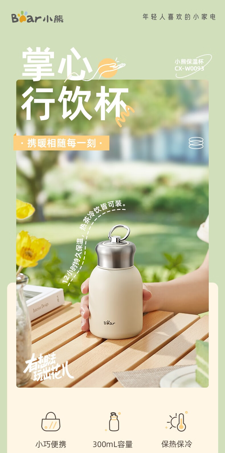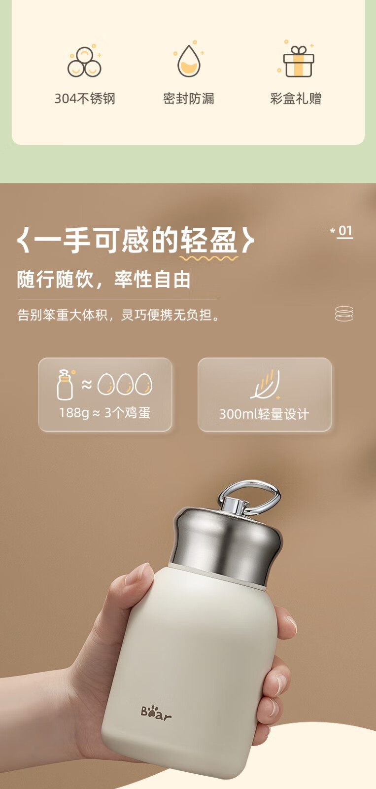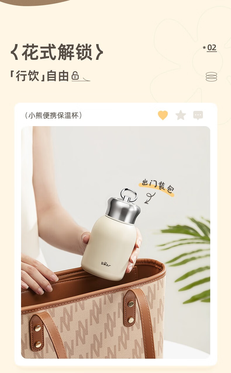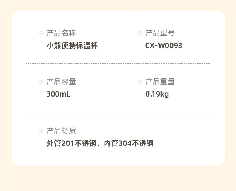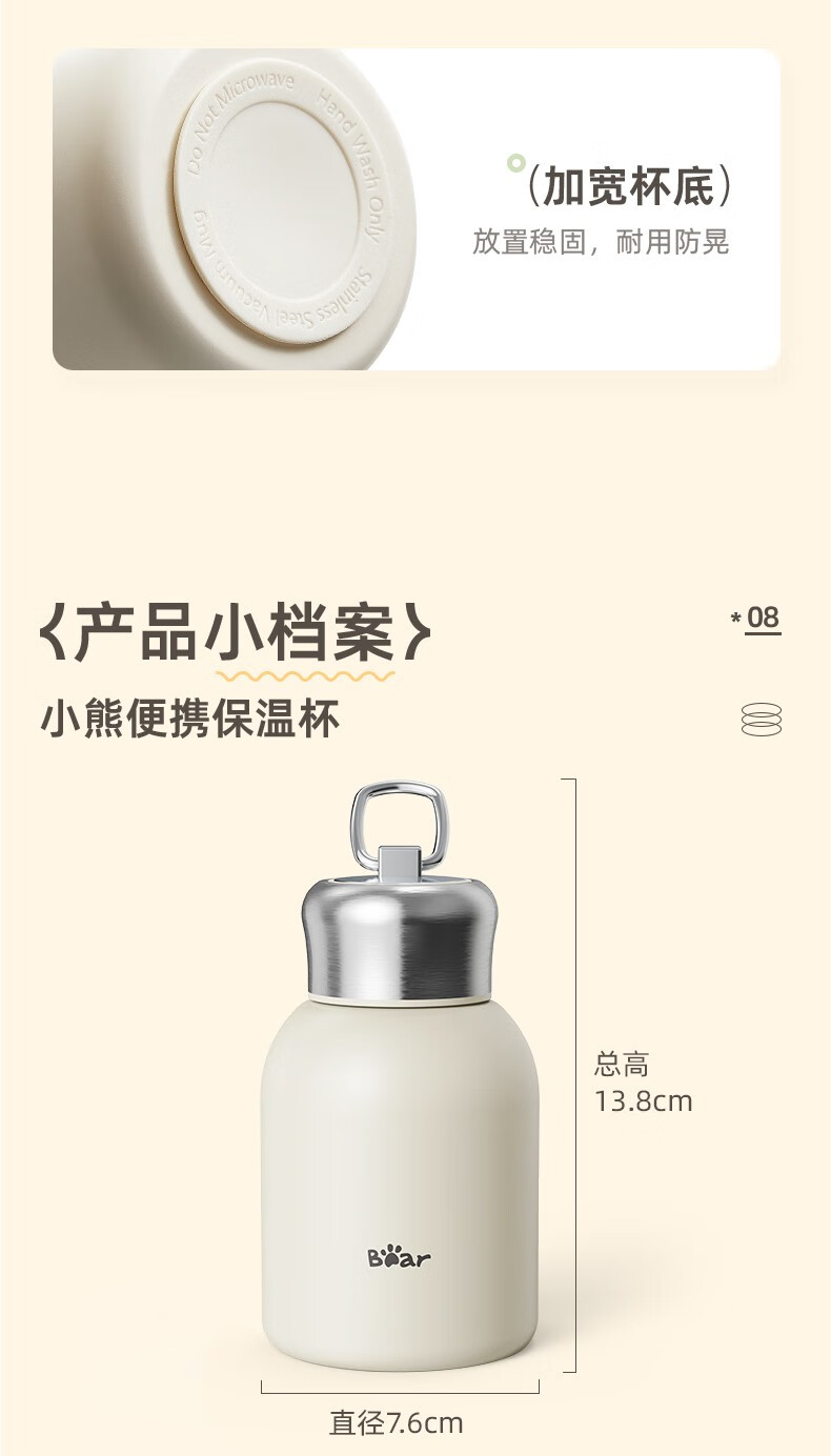 双11活动礼品:小熊(Bear)保温杯女士男士学生儿童随身不锈钢便携保温水杯户外大容量 便携保温杯 CX-W0093 300ml