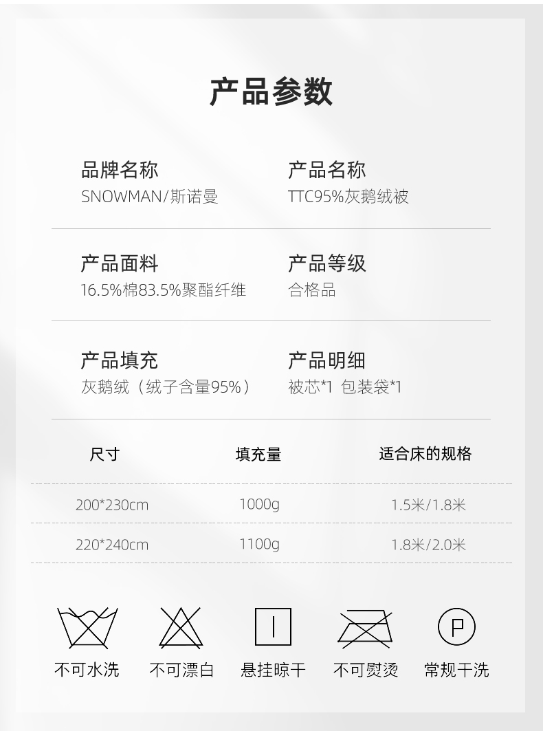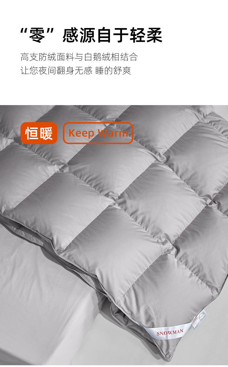 斯诺曼Snowman【品牌直发】 抑菌静音羽绒被芯95%鹅绒被保暖加厚冬被6201572