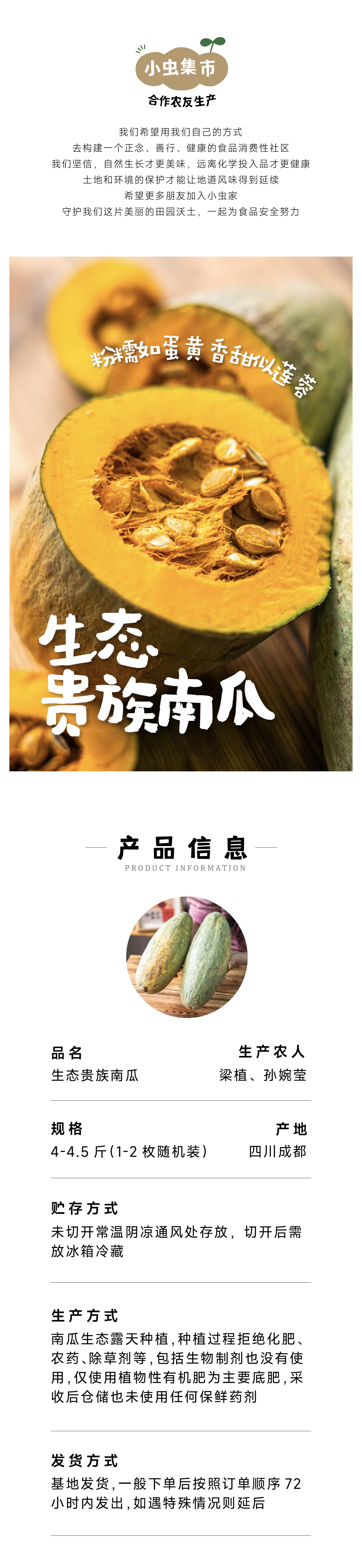生态贵族南瓜(老南瓜)4-4.5斤 | 合作农友生产,产自四川成都,生产者:梁植、孙婉莹 *【公平贸易农人定价】