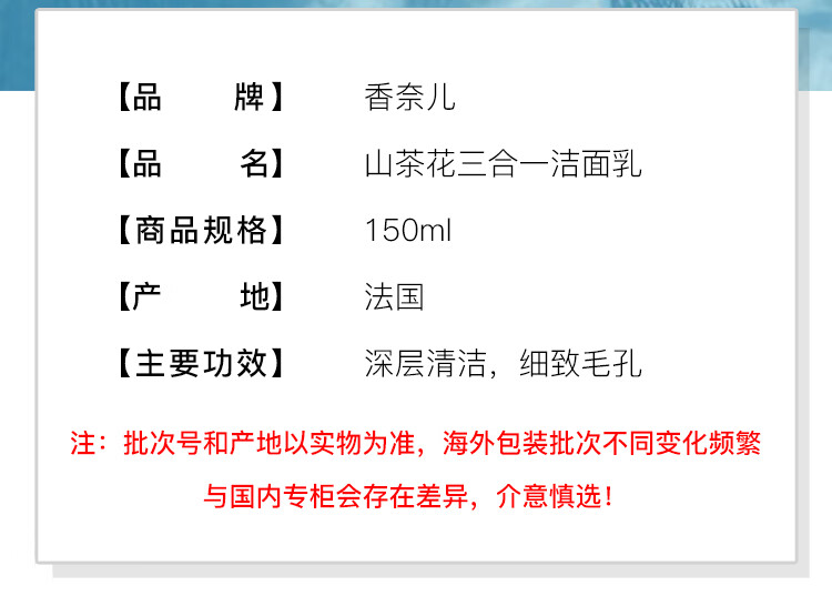 香奈儿(Chanel)山茶花洁面乳洗面奶150ml