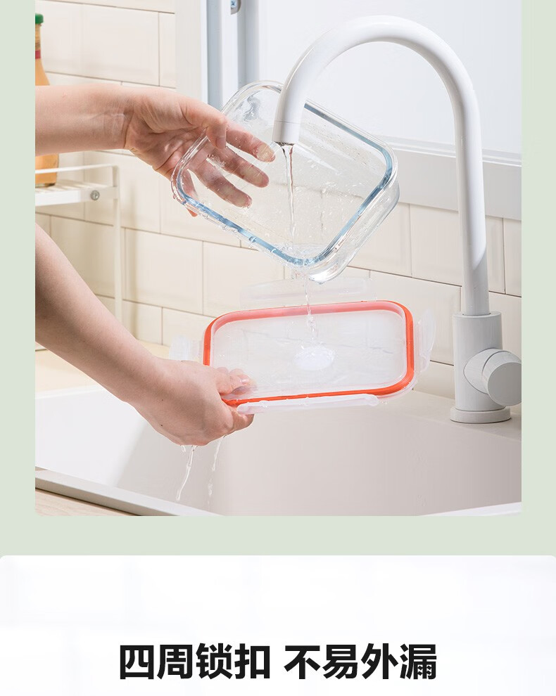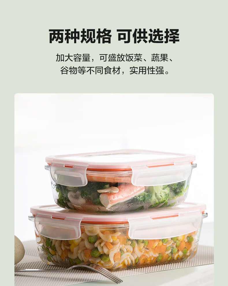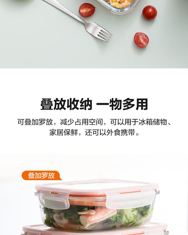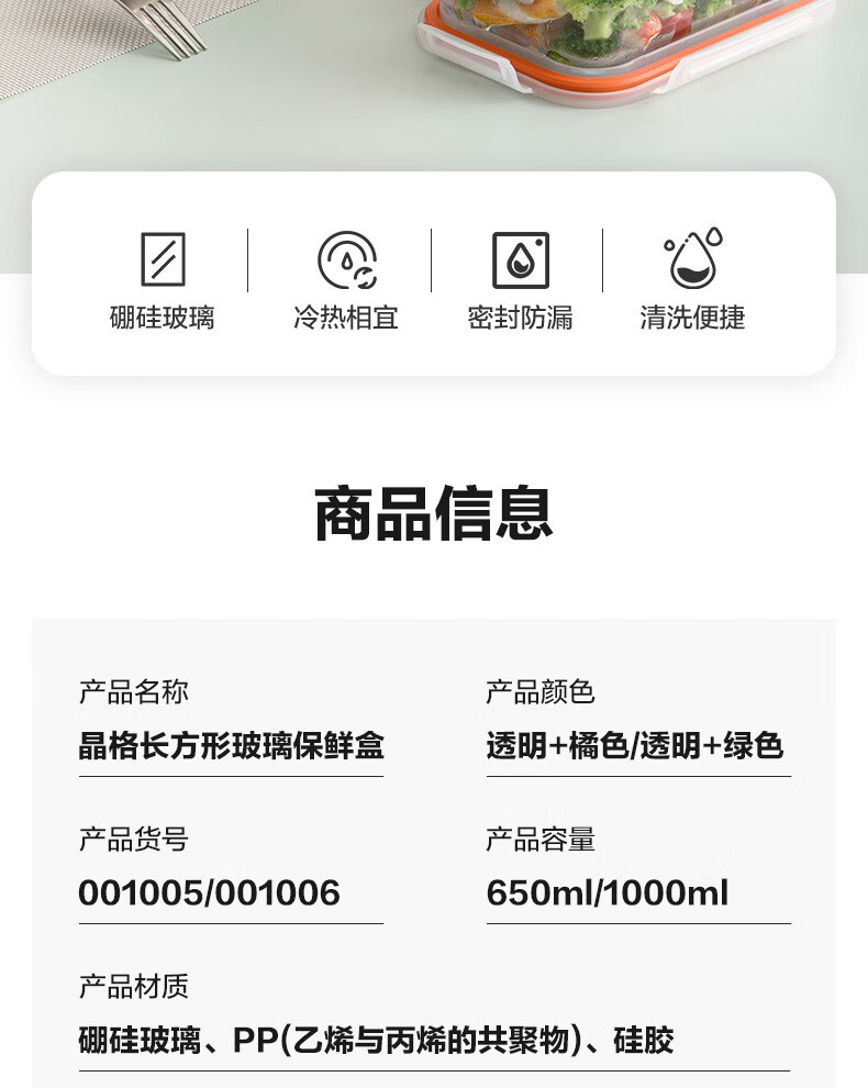 茶花 保鲜盒 晶格长方形玻璃保鲜盒650ml/1000ml