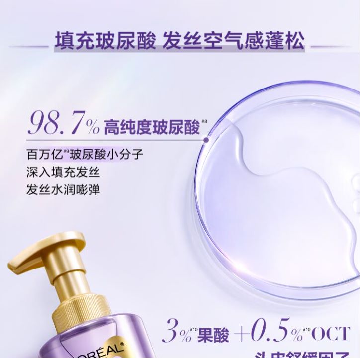 欧莱雅玻尿酸洗发水护发素洗护套装控油蓬松去油清爽洗头水洗发露(有效期至2026年12月)