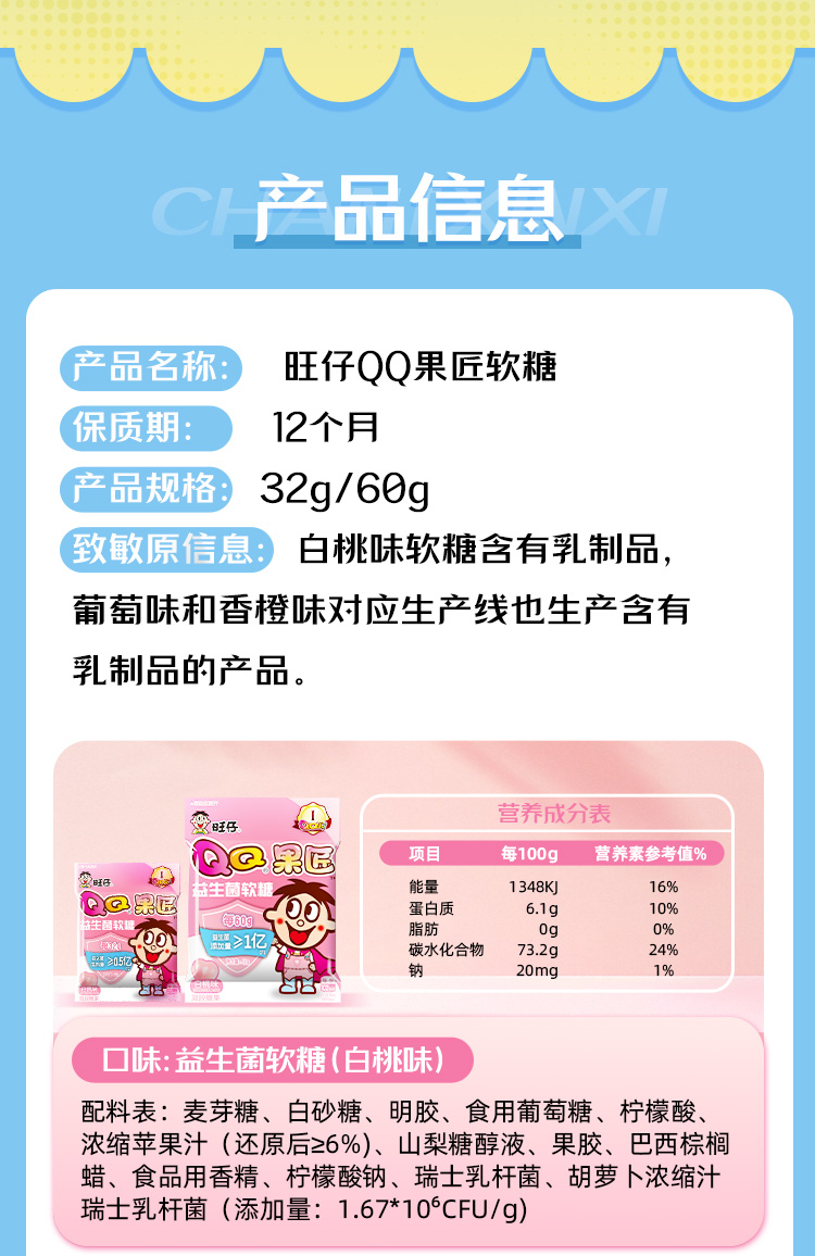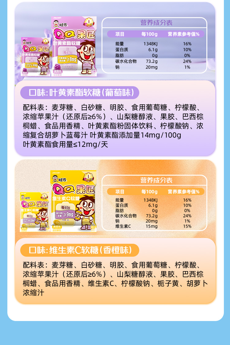 旺仔QQ果匠软糖 叶黄素酯软糖/益生菌软糖/维生素C软糖
