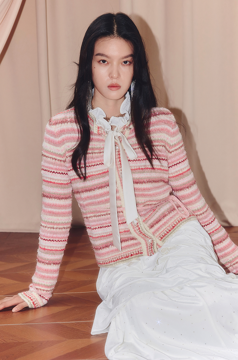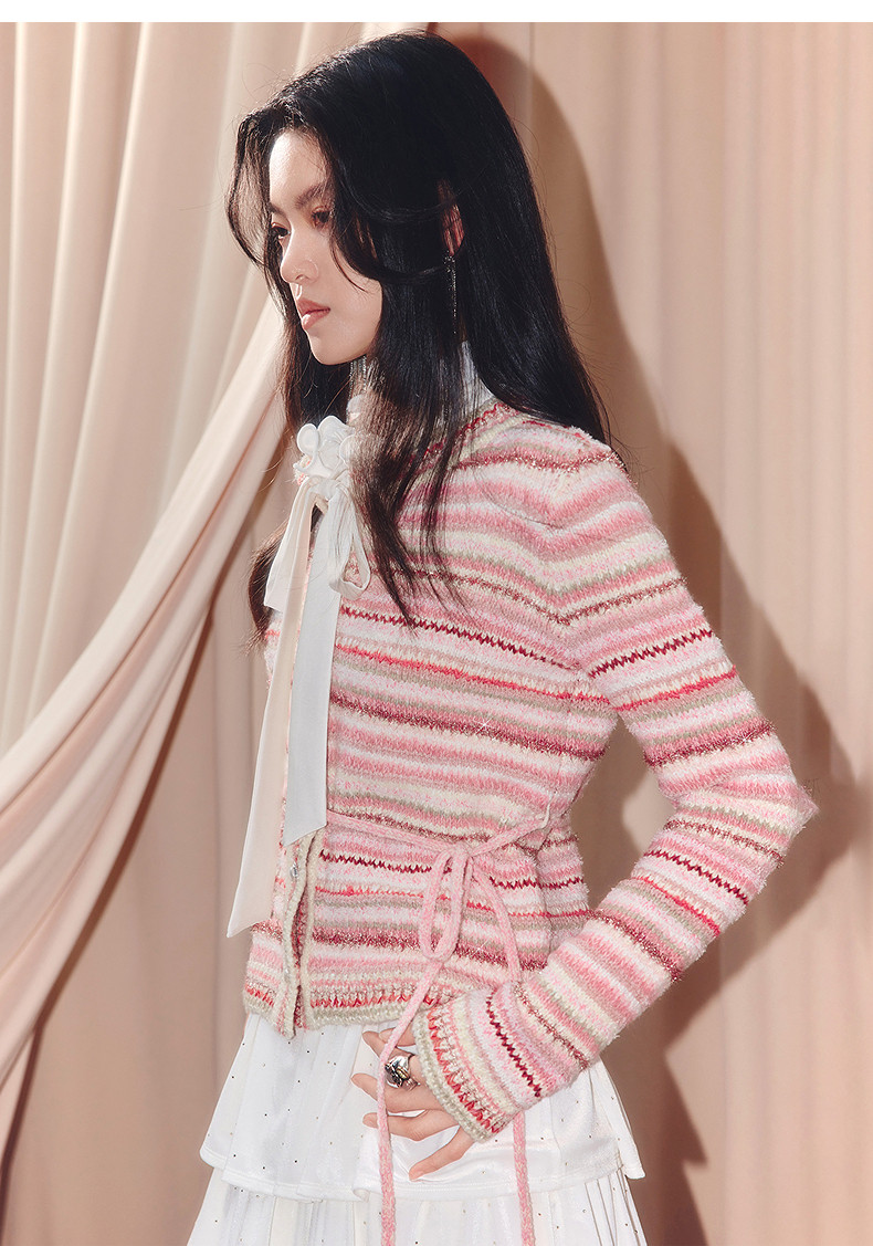 天虹发货:MAXRIENY欧若风穿搭条纹毛针织衫25冬款费尔岛风针织长袖上衣女(货号:MS86SW521)