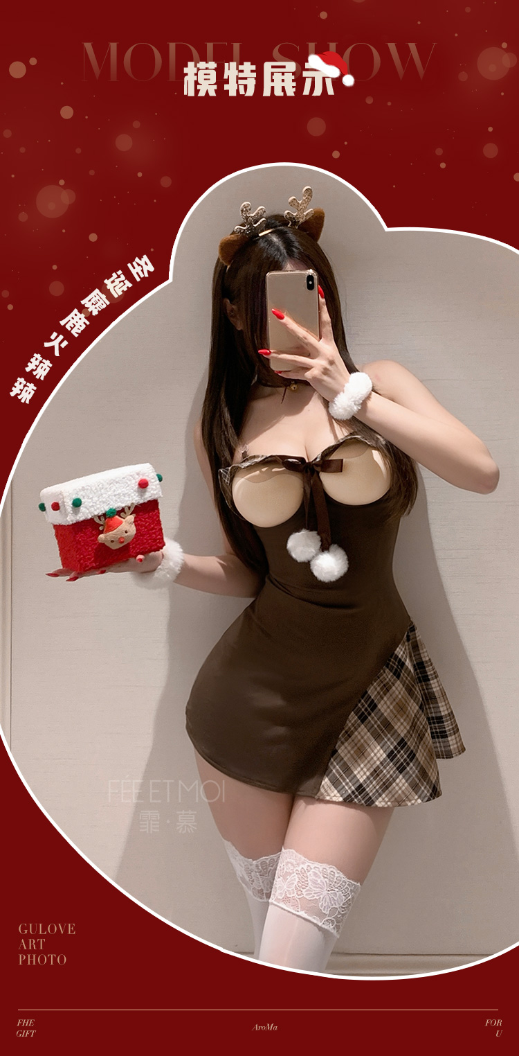 【情趣内衣】霏慕 纯欲麋鹿圣诞响铃套装ZY152