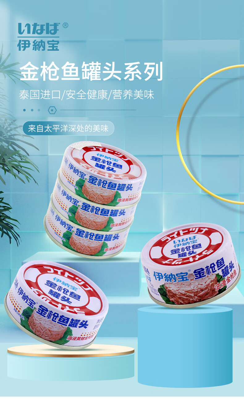 伊纳宝泰国进口伊纳宝金枪鱼罐头黄鳍金枪鱼即食罐头沙拉寿司材料吞拿鱼 油浸黄鳍金枪鱼罐头/黄鳍金枪鱼罐头(无油)3罐*15组/箱