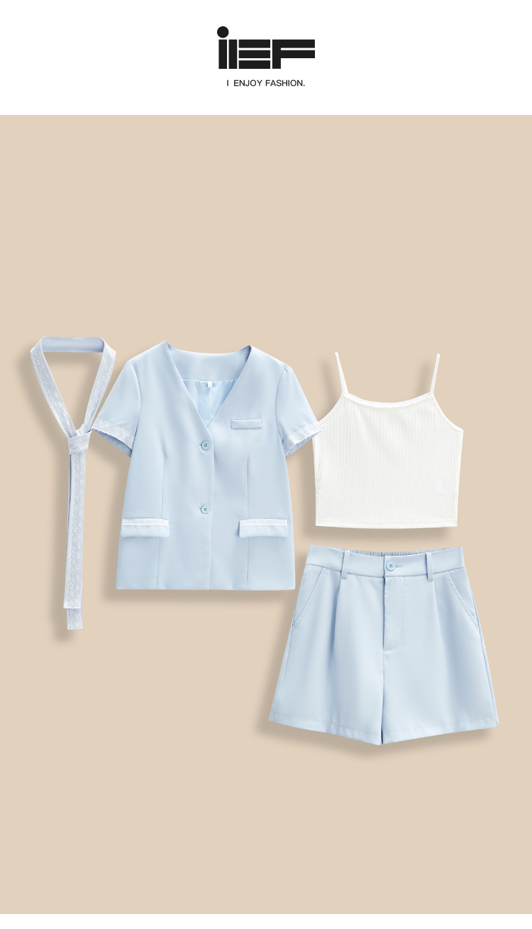 【小个子定制】 IEF/爱依服2025时尚套装夏季 上衣两件套法式名媛气质上下套裤DS42384-X-