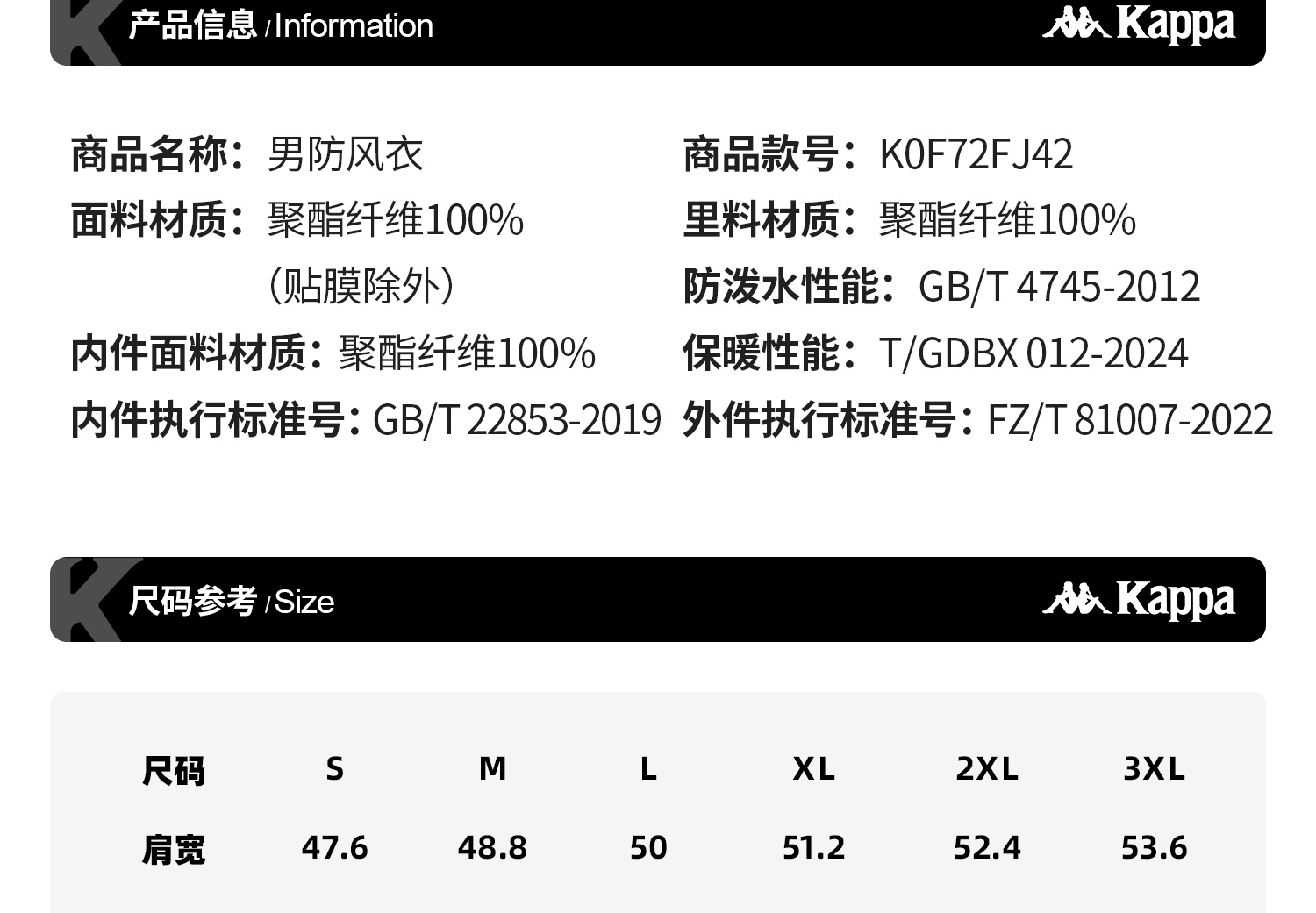 Kappa运动外套男士新款两件套防风防泼水夹克保暖上衣K0F72FJ42