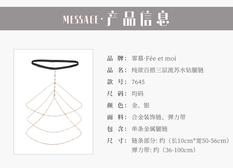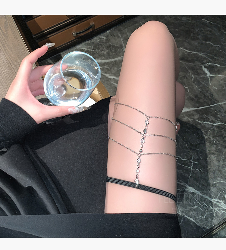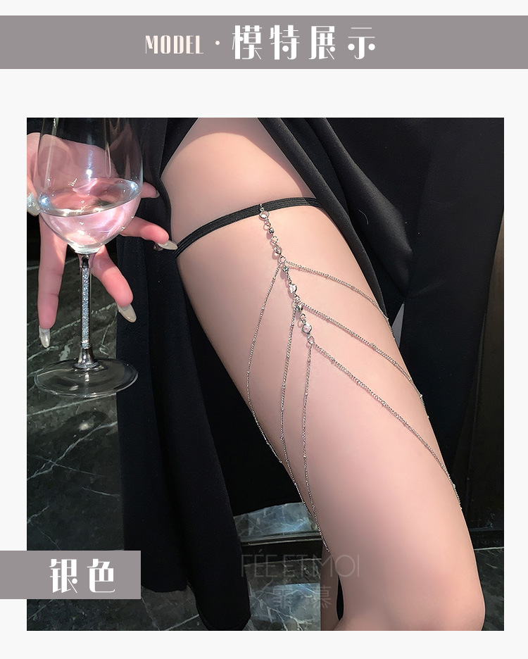 【霏慕】纯欲百搭三层流苏水钻腿链7645情趣内衣性感合金装饰