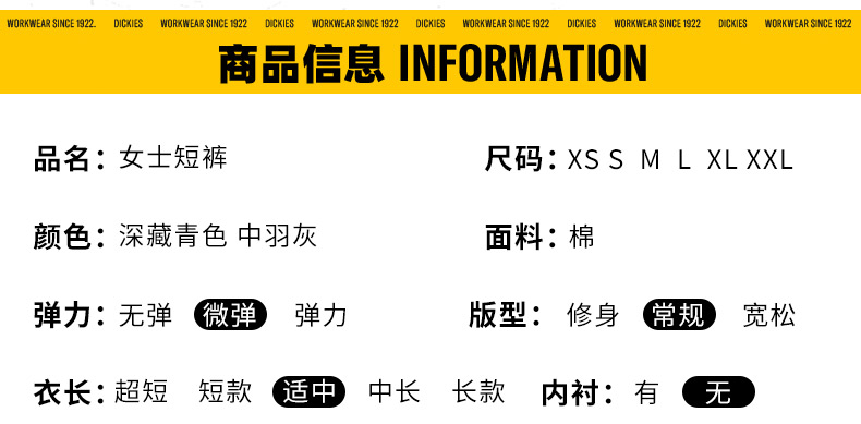 Dickies短裤 女式休闲百搭字母印花舒适短裤 DK0A87D5